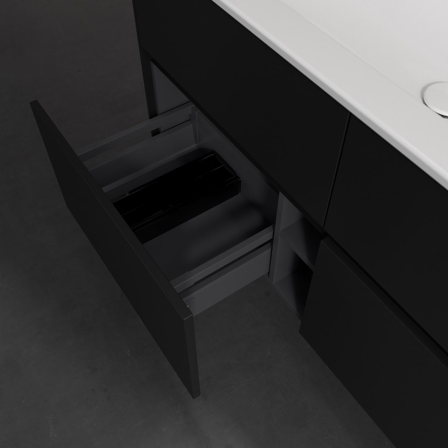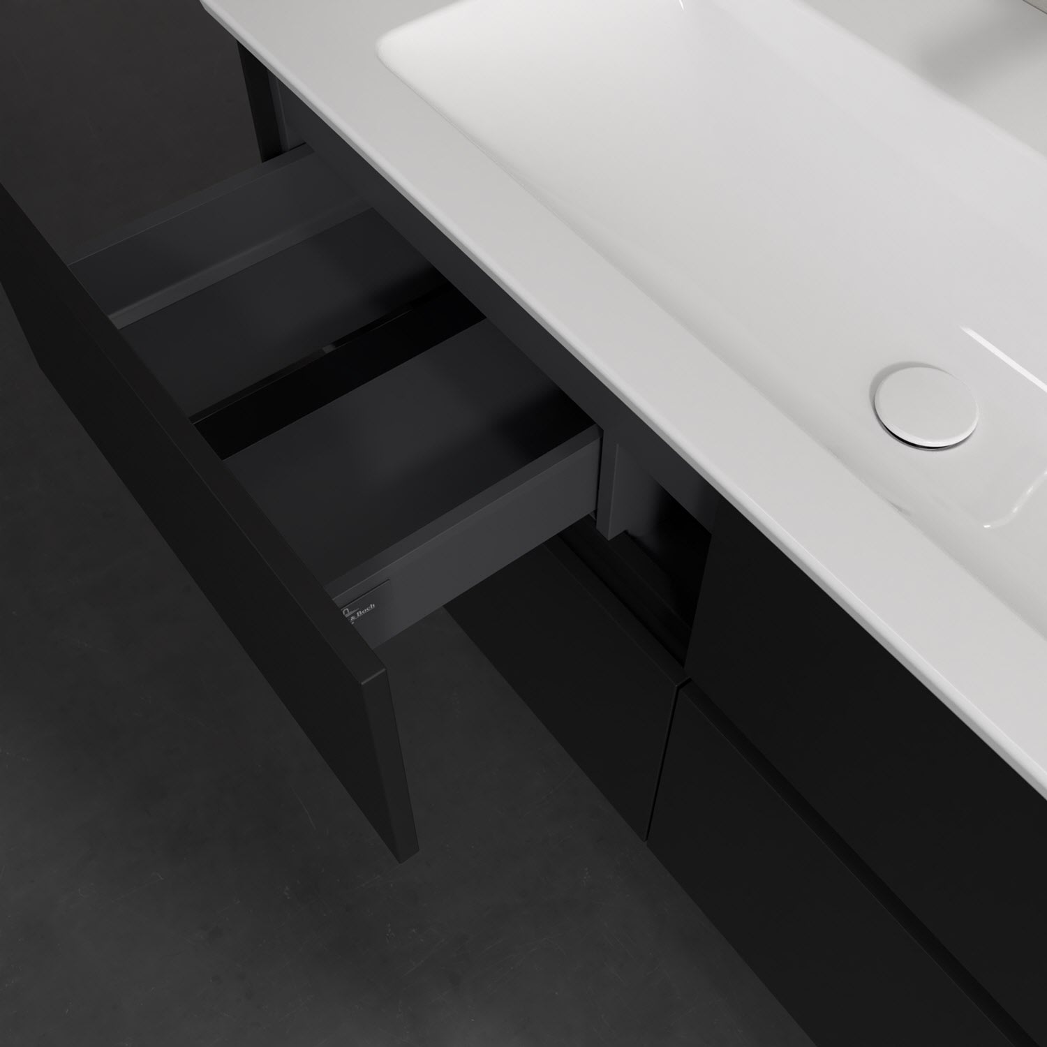 Stauraumwunder im zeitgemäßen Design: Der Villeroy & Boch Waschbeckenunterschrank aus der Collaro Kollektion eignet sich besonders für Familienbäder und bietet genau den Platz, der dort benötigt wird. Eine integrierte Griffleiste sorgt für eine schlichte, moderne Front. Im Inneren bietet das Möbelstück mit vier Auszügen erstaunlich viel Komfort – ermöglicht durch großzügiges Platzangebot und den integrierten Antirutschboden. Variabel setzbare Glasabtrennungen und mitgelieferte Accessory Boxen sorgen für den nötigen Überblick. Dank SoftClosing und Selbsteinzug lassen sich die Auszüge nach der Nutzung lautlos schließen. Die Front ist mit einer hochwertigen Lackierung versehen, deren Anti-Fingerprint-Oberfläche unschönen Fingerabdrücken vorbeugt.