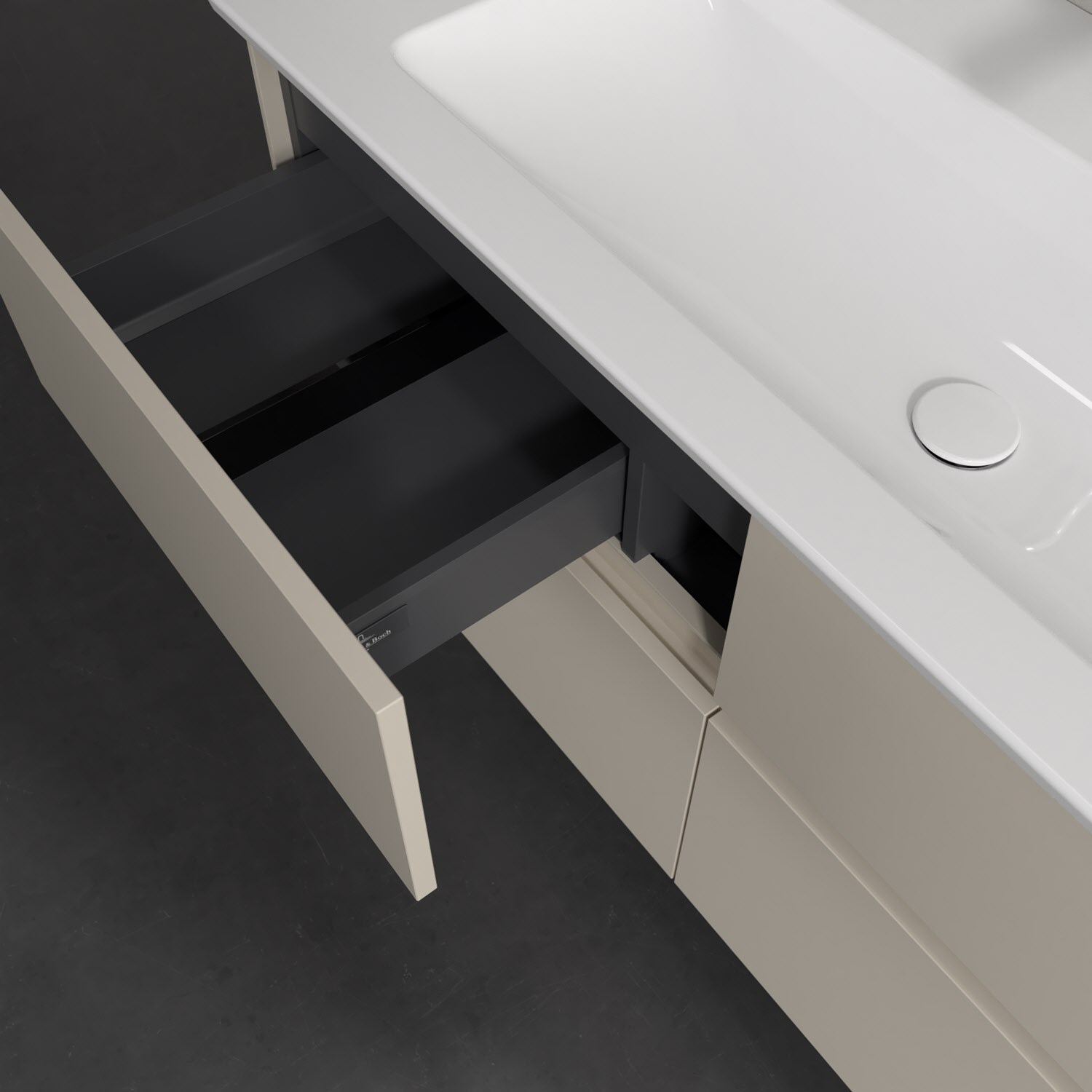 Stauraumwunder im zeitgemäßen Design: Der Villeroy & Boch Waschbeckenunterschrank aus der Collaro Kollektion eignet sich besonders für Familienbäder und bietet genau den Platz, der dort benötigt wird. Eine integrierte Griffleiste sorgt für eine schlichte, moderne Front. Im Inneren bietet das Möbelstück mit vier Auszügen erstaunlich viel Komfort – ermöglicht durch großzügiges Platzangebot und den integrierten Antirutschboden. Variabel setzbare Glasabtrennungen und mitgelieferte Accessory Boxen sorgen für den nötigen Überblick. Dank SoftClosing und Selbsteinzug lassen sich die Auszüge nach der Nutzung lautlos schließen. Die Front ist mit einer hochwertigen Lackierung versehen, deren Anti-Fingerprint-Oberfläche unschönen Fingerabdrücken vorbeugt.