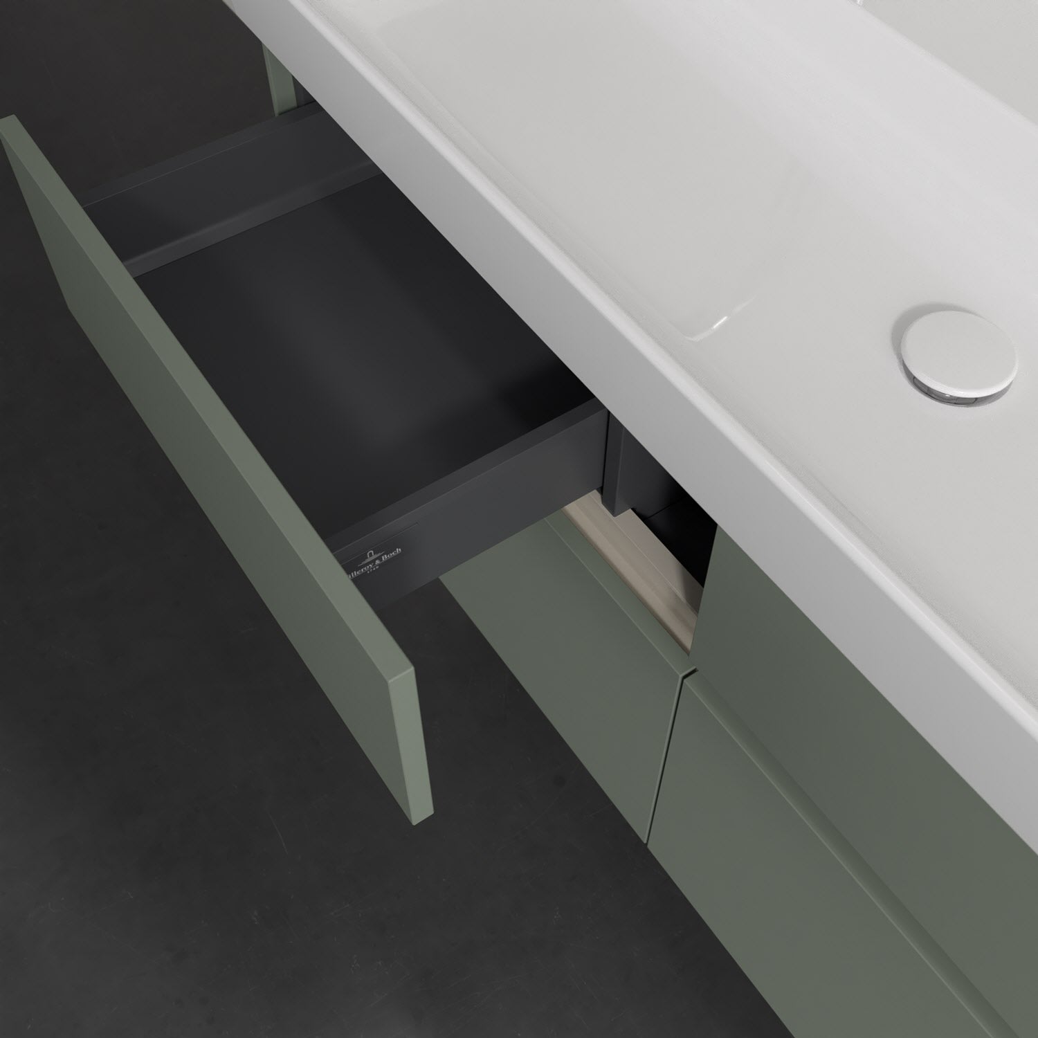 Stauraumwunder im zeitgemäßen Design: Der Villeroy & Boch Waschbeckenunterschrank aus der Collaro Kollektion eignet sich besonders für Familienbäder und bietet genau den Platz, der dort benötigt wird. Stimmungsvolles Highlight der schlichten, modernen Front ist die integrierte Griffmulde mit stufenlos einstellbarer LED-Beleuchtung. Steuern lässt sie sich über einen Touch-Sensor seitlich am Unterschrank. Im Inneren bietet das Möbelstück mit vier Auszügen erstaunlich viel Komfort – ermöglicht durch großzügiges Platzangebot und den integrierten Antirutschboden. Variabel setzbare Glasabtrennungen und mitgelieferte Accessory Boxen sorgen für den nötigen Überblick. Dank SoftClosing und Selbsteinzug lassen sich die Auszüge nach der Nutzung lautlos schließen. Die Front ist mit einer hochwertigen Lackierung versehen, deren Anti-Fingerprint-Oberfläche unschönen Fingerabdrücken vorbeugt.