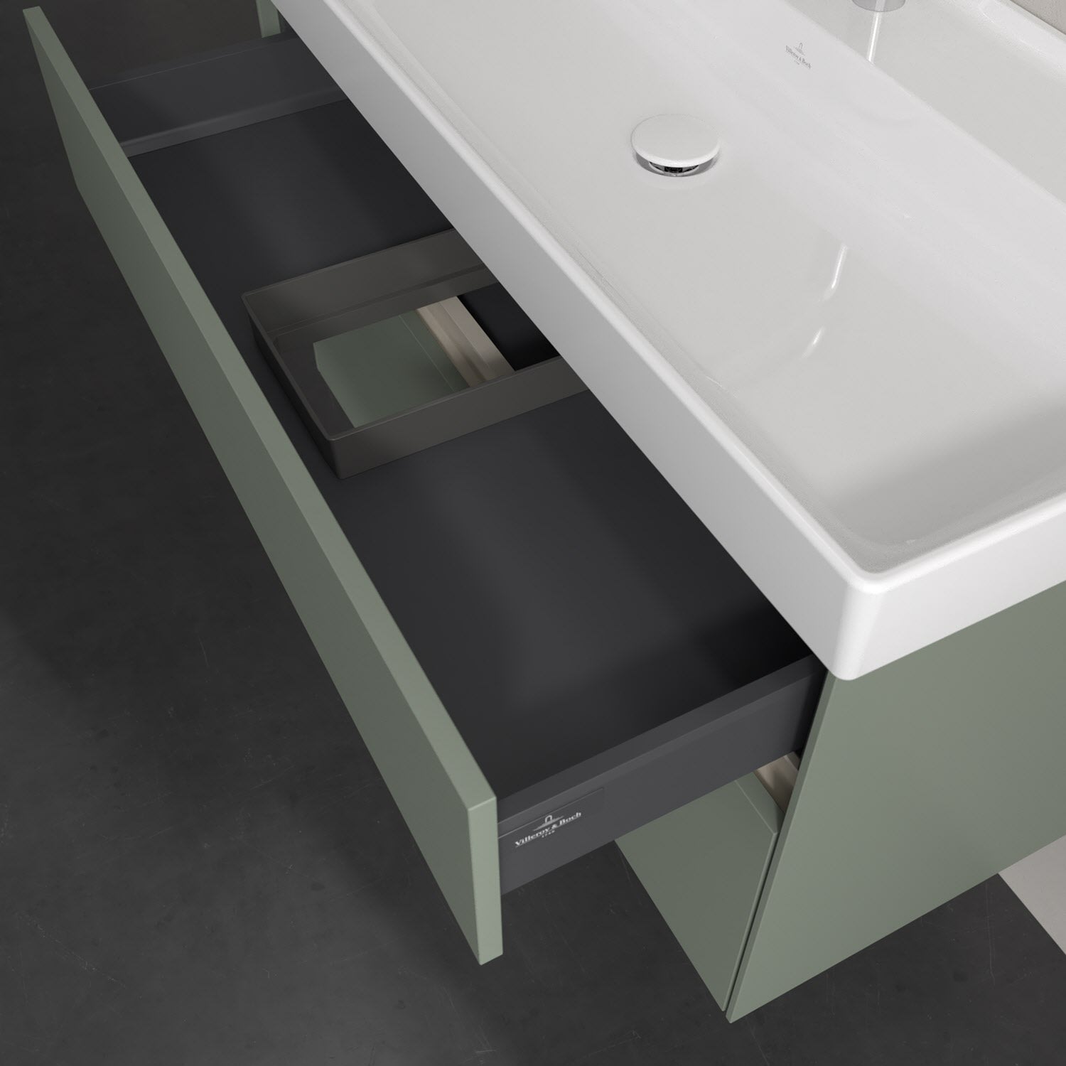 Zeitgemäßes Design und feine Linien: Der Villeroy & Boch Waschbeckenunterschrank aus der Collaro Kollektion mit zwei Auszügen glänzt mit vielen Vorzügen. Eine Griffleiste mit integrierter, stufenlos einstellbarer LED-Beleuchtung sorgt für eine schlichte, stimmungsvolle Front. Steuern lässt sich das Licht über einen Touch-Sensor seitlich am Unterschrank. Im Inneren bietet das Möbelstück erstaunlich viel Komfort – ermöglicht durch großzügigen Stauraum und den integrierten Antirutschboden. Die variabel setzbaren Glasabtrennungen und die mitgelieferte Accessory Box bieten Badutensilien ausreichend Platz und sorgen für den nötigen Überblick. Dank SoftClosing und Selbsteinzug lassen sich die Auszüge nach der Nutzung lautlos schließen. Die Front ist mit einer hochwertigen Lackierung versehen, deren Anti-Fingerprint-Oberfläche unschönen Fingerabdrücken vorbeugt.