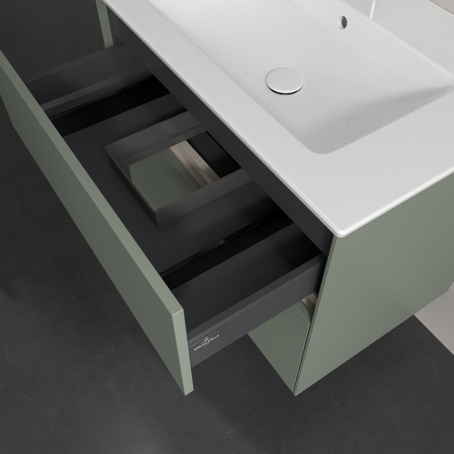 Kompaktes Design und feine Linien: Der Villeroy & Boch Waschbeckenunterschrank aus der Collaro Kollektion mit zwei Auszügen passt perfekt in kleine Bäder oder Gästebäder. Eine Griffleiste mit integrierter, stufenlos einstellbarer LED-Beleuchtung sorgt für eine schlichte, stimmungsvolle Front. Steuern lässt sich das Licht über einen Touch-Sensor seitlich am Unterschrank. Im Inneren bietet das Möbelstück erstaunlich viel Komfort – ermöglicht durch großzügigen Stauraum und den integrierten Antirutschboden. Die mitgelieferte Accessory Box bietet kleinen Badutensilien oder Kosmetik Platz und sorgt so für den nötigen Überblick. Dank SoftClosing und Selbsteinzug lassen sich die Auszüge nach der Nutzung lautlos schließen. Die Front ist mit einer hochwertigen Lackierung versehen, deren Anti-Fingerprint-Oberfläche unschönen Fingerabdrücken vorbeugt.