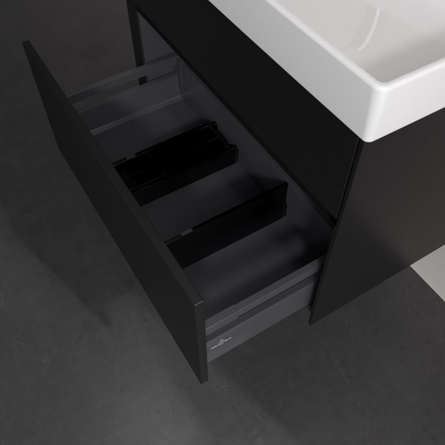 - kein Umfallen oder Verrutschen von Pflegeprodukten in den Schubladen dank rutschhemmendem Boden