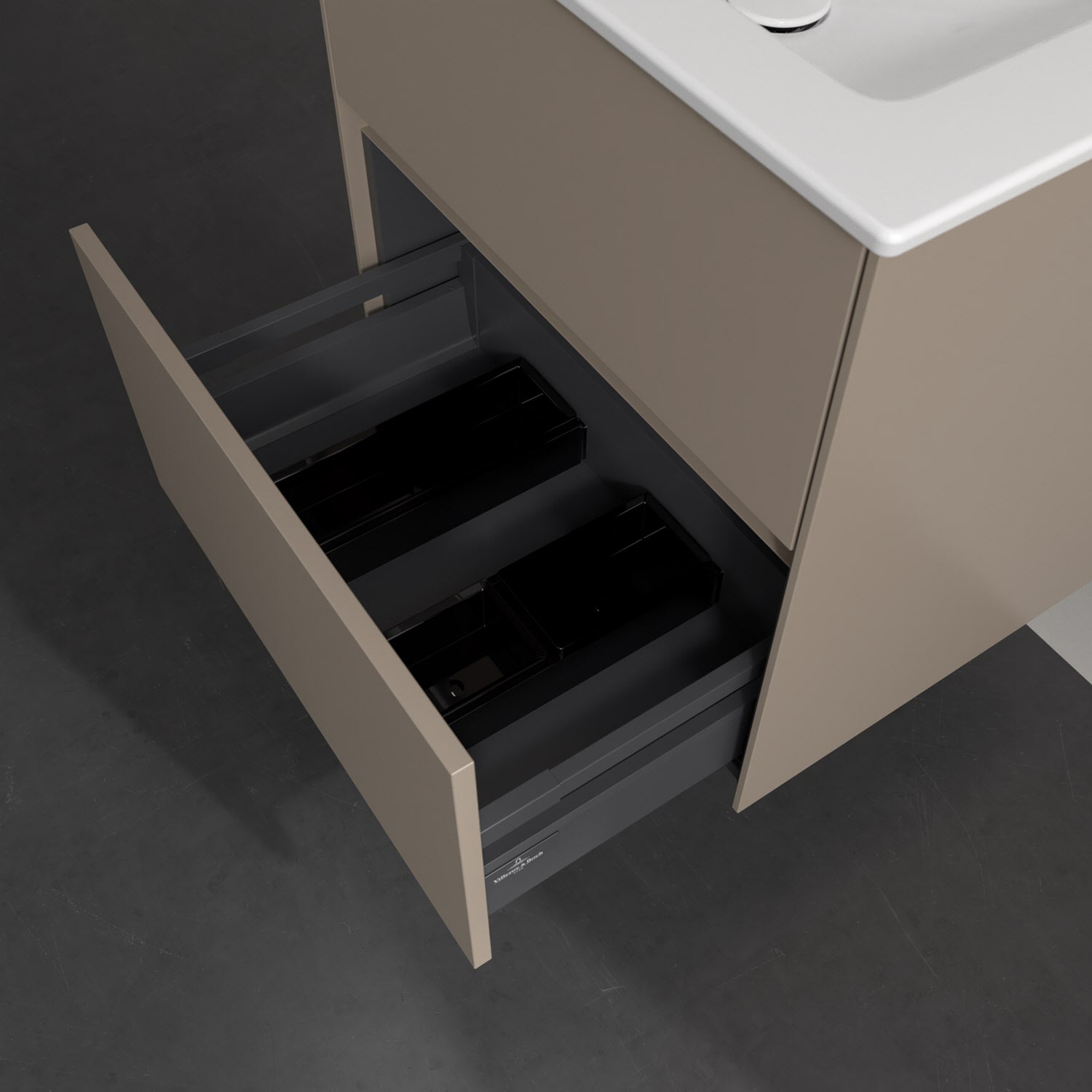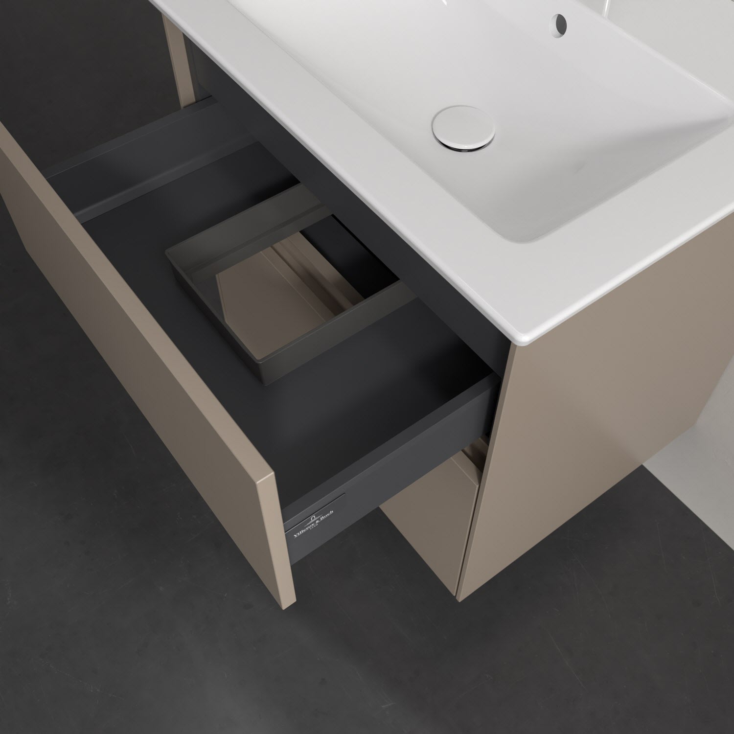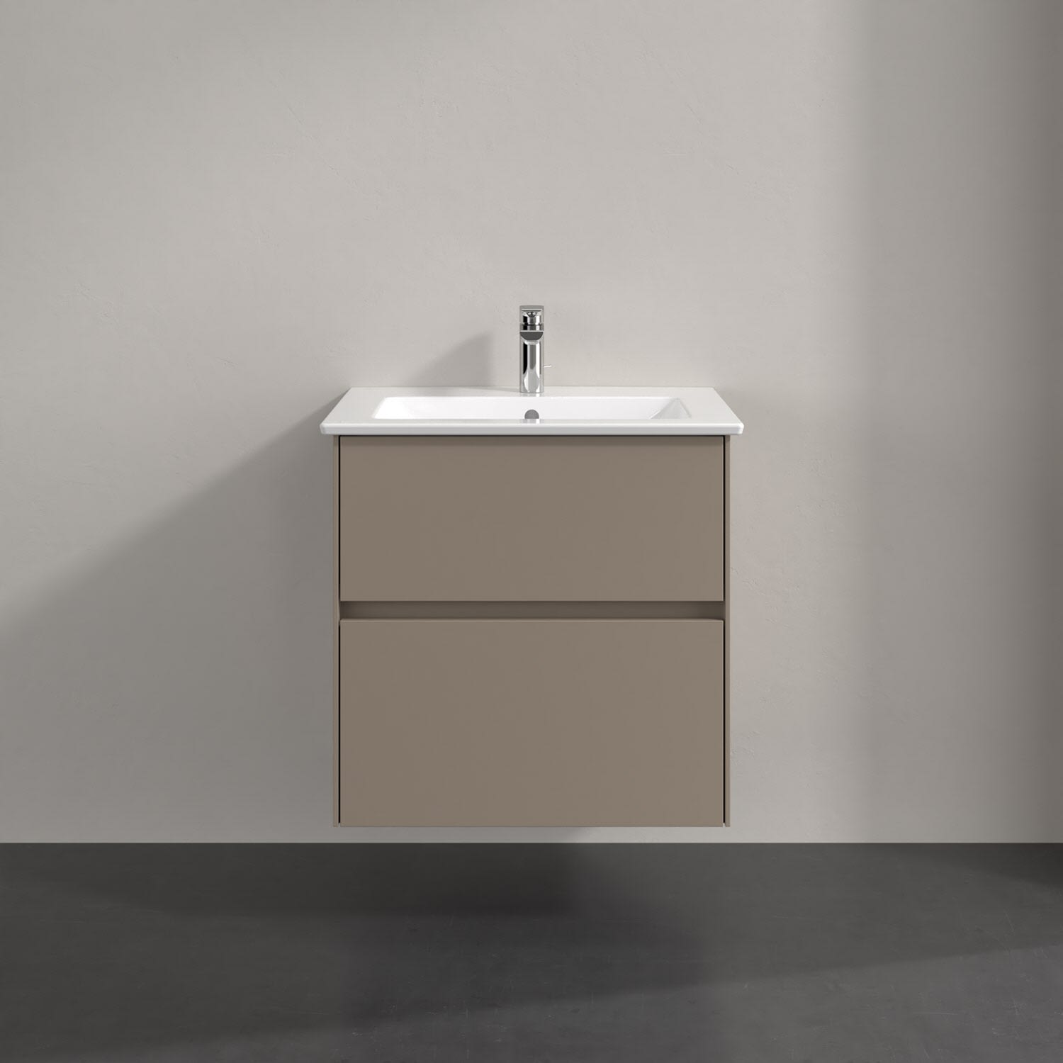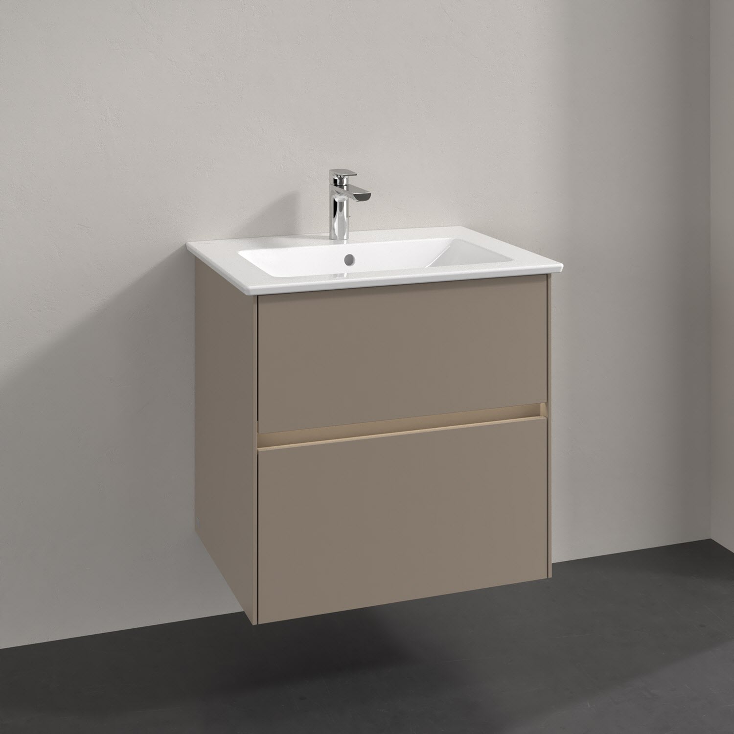 Villeroy & Boch Antao Waschbeckenunterschrank, 60 x 36 cm, 2 Auszüge mit LED-Licht, Front ohne Struktur, mit Hahnloch