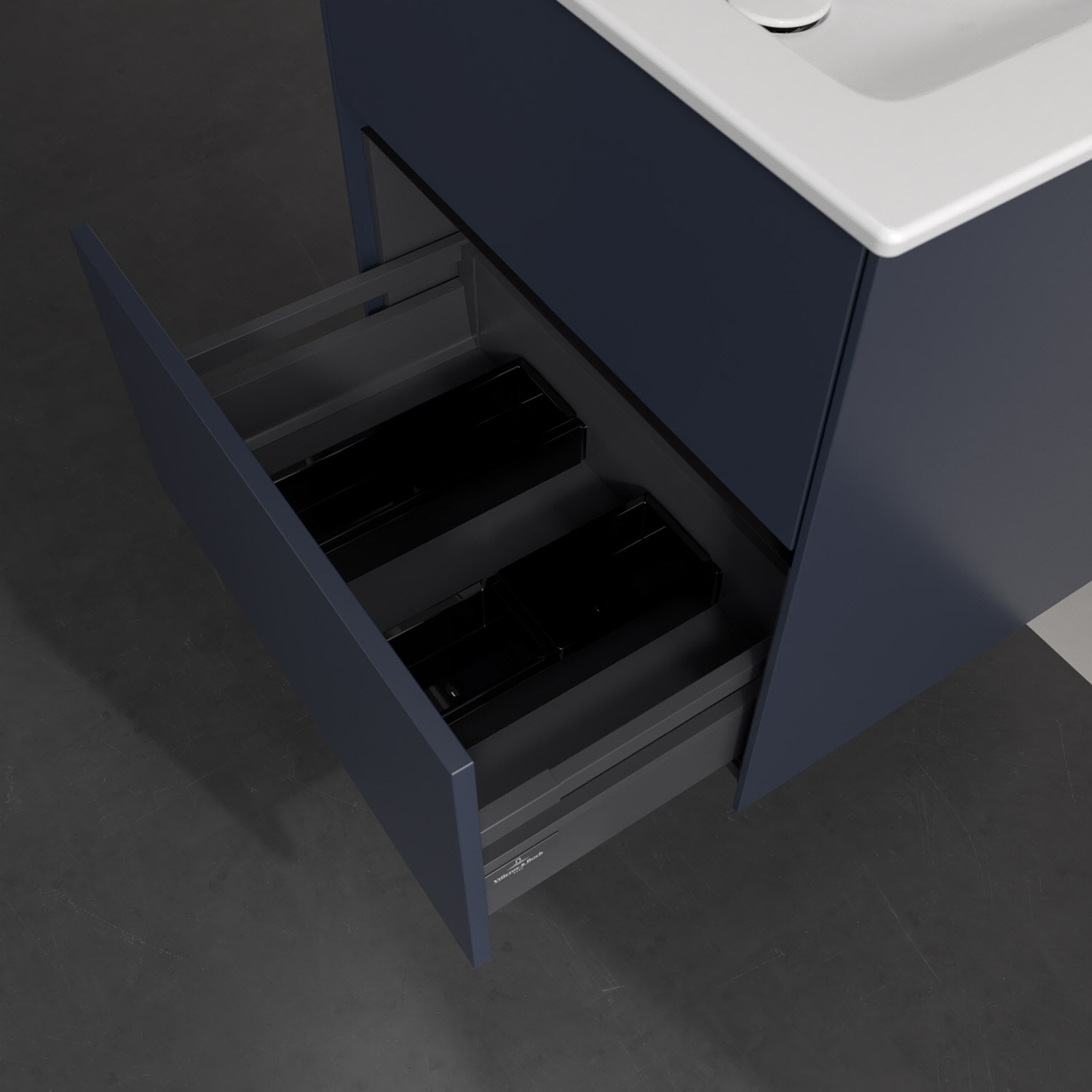 Villeroy & Boch Antao Waschbeckenunterschrank, 60 x 36 cm, 2 Auszüge mit LED-Licht, Front ohne Struktur, mit Hahnloch