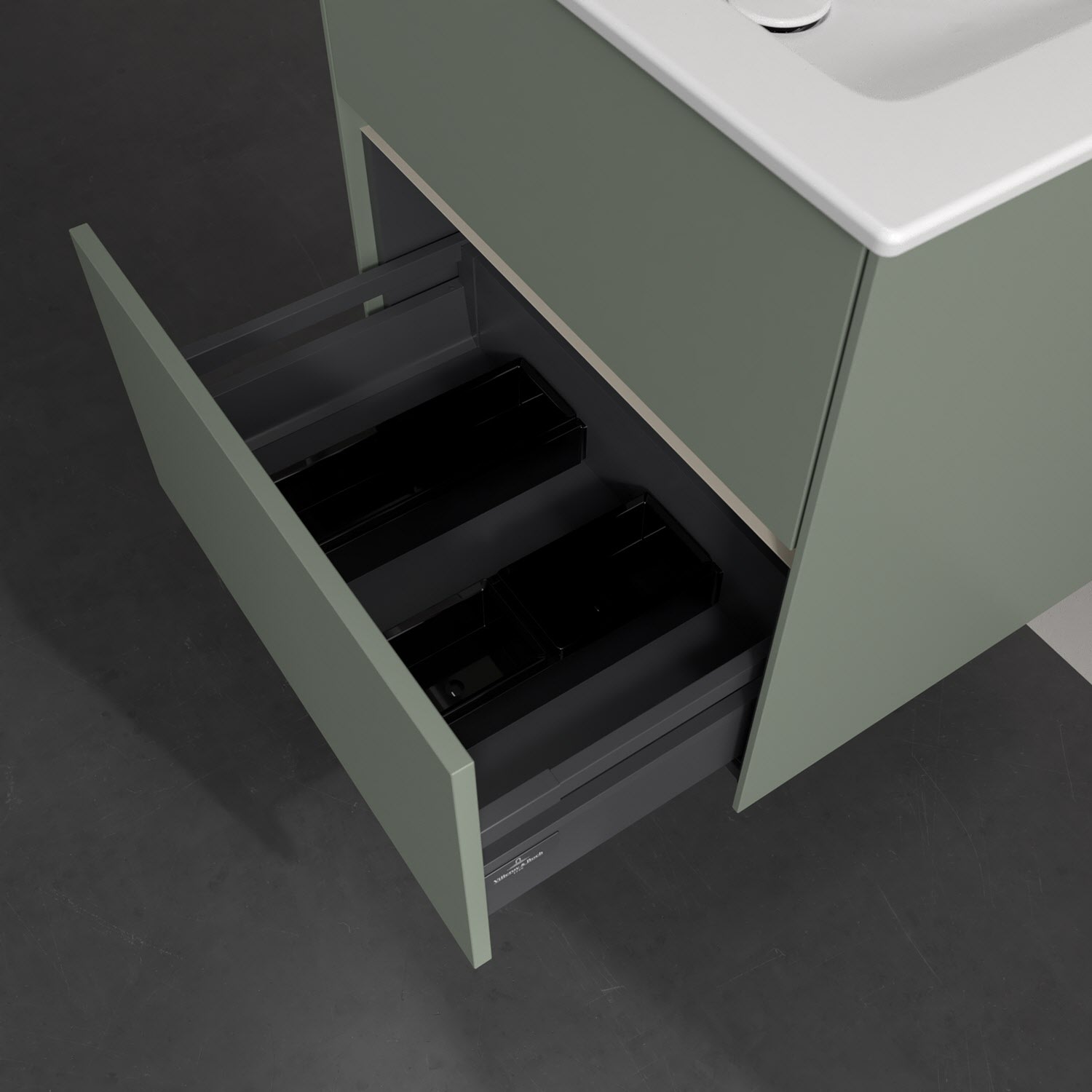 Villeroy & Boch Antao Waschbeckenunterschrank, 60 x 36 cm, 2 Auszüge mit LED-Licht, Front ohne Struktur, mit Hahnloch