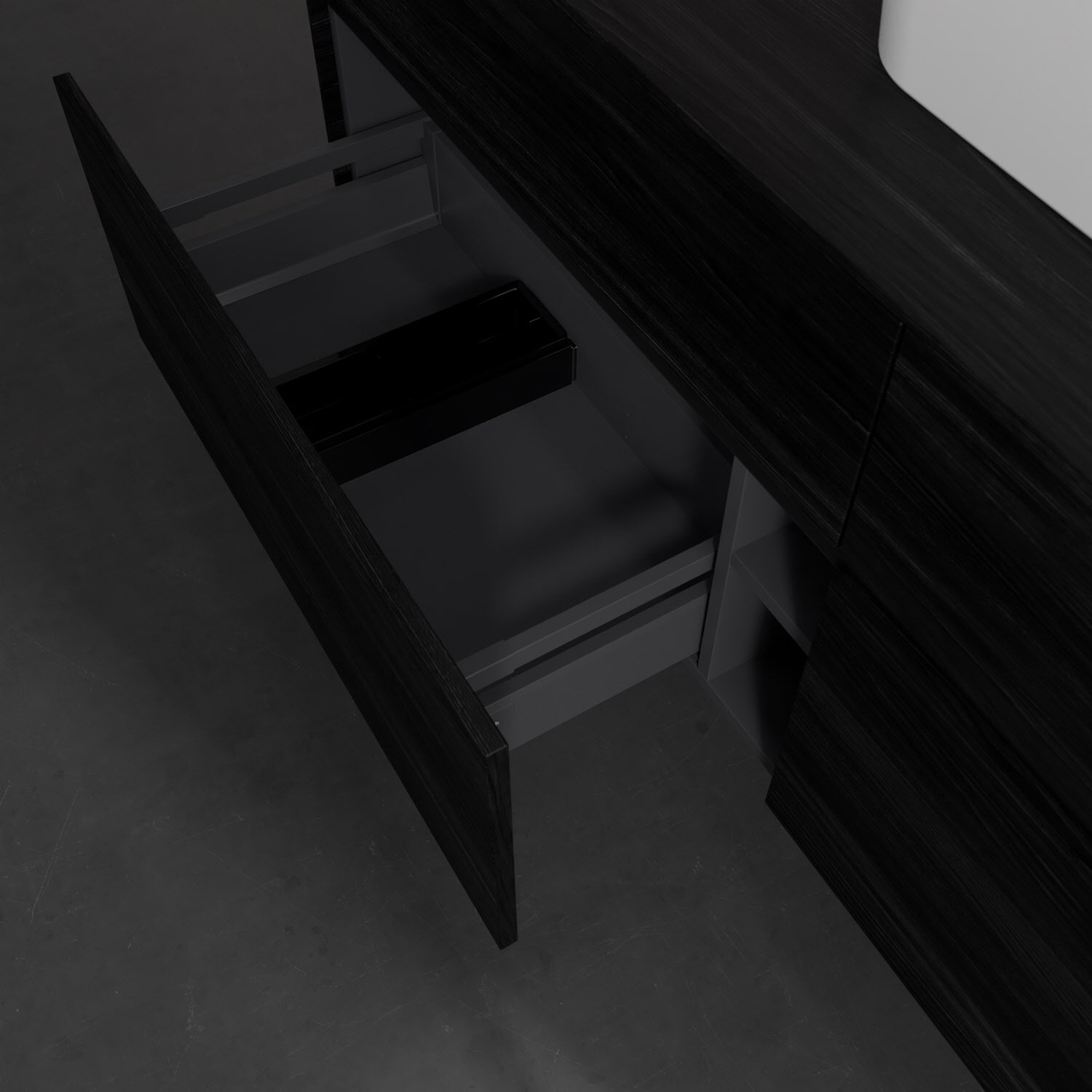 Stauraumwunder im zeitgemäßen Design: Der Villeroy & Boch Waschbeckenunterschrank aus der Collaro Kollektion eignet sich besonders für Familienbäder und bietet genau den Platz, der dort benötigt wird. Stimmungsvolles Highlight der schlichten, modernen Front ist die integrierte Griffmulde mit stufenlos einstellbarer LED-Beleuchtung. Im Inneren bietet das Möbelstück mit vier Auszügen erstaunlich viel Komfort – ermöglicht durch großzügiges Platzangebot und den integrierten Antirutschboden. Variabel setzbare Glasabtrennungen und mitgelieferte Accessory Boxen sorgen für den nötigen Überblick. Dank SoftClosing und Selbsteinzug lassen sich die Auszüge nach der Nutzung lautlos schließen. Die Front ist mit einer hochwertigen Lackierung versehen, deren Anti-Fingerprint-Oberfläche unschönen Fingerabdrücken vorbeugt.