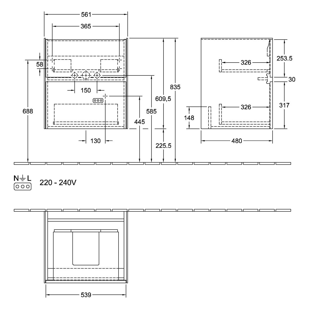 Villeroy & Boch Collaro Waschtischunterschrank 56,1 x 61 cm , mit LED-Beleuchtung, mit 2 Auszügen