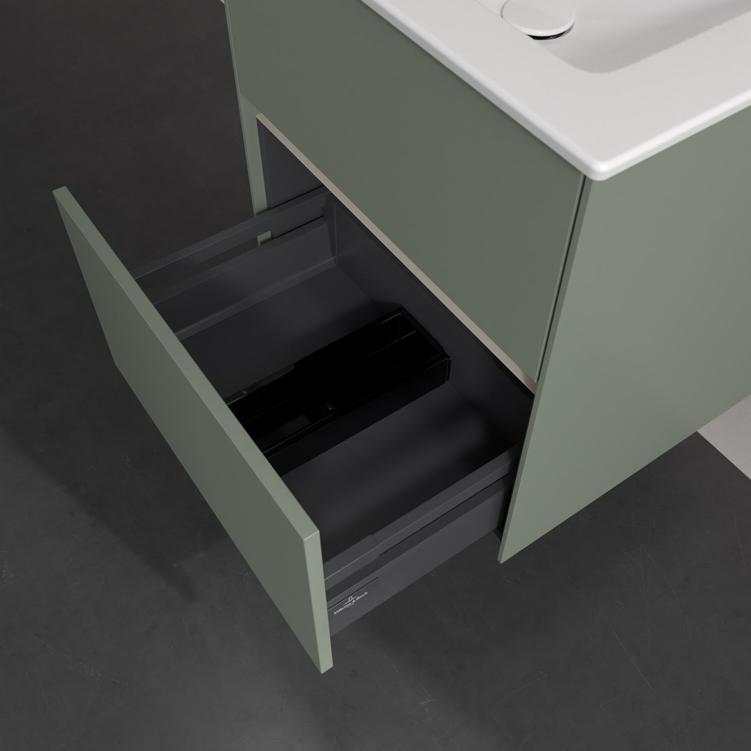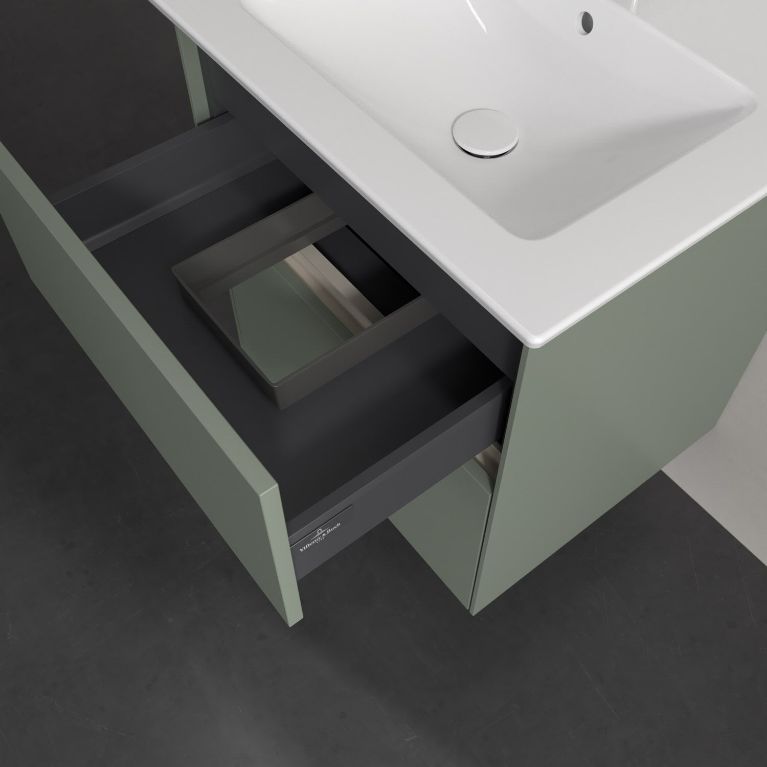 Kompaktes Design und feine Linien: Der Villeroy & Boch Waschbeckenunterschrank aus der Collaro Kollektion mit zwei Auszügen passt perfekt in kleine Bäder oder Gästebäder. Eine Griffleiste mit integrierter, stufenlos einstellbarer LED-Beleuchtung sorgt für eine schlichte, stimmungsvolle Front. Steuern lässt sich das Licht über einen Touch-Sensor seitlich am Unterschrank. Im Inneren bietet das Möbelstück erstaunlich viel Komfort – ermöglicht durch großzügigen Stauraum und den integrierten Antirutschboden. Die mitgelieferte Accessory Box bietet kleinen Badutensilien oder Kosmetik Platz und sorgt so für den nötigen Überblick. Dank SoftClosing und Selbsteinzug lassen sich die Auszüge nach der Nutzung lautlos schließen. Die Front ist mit einer hochwertigen Lackierung versehen, deren Anti-Fingerprint-Oberfläche unschönen Fingerabdrücken vorbeugt.