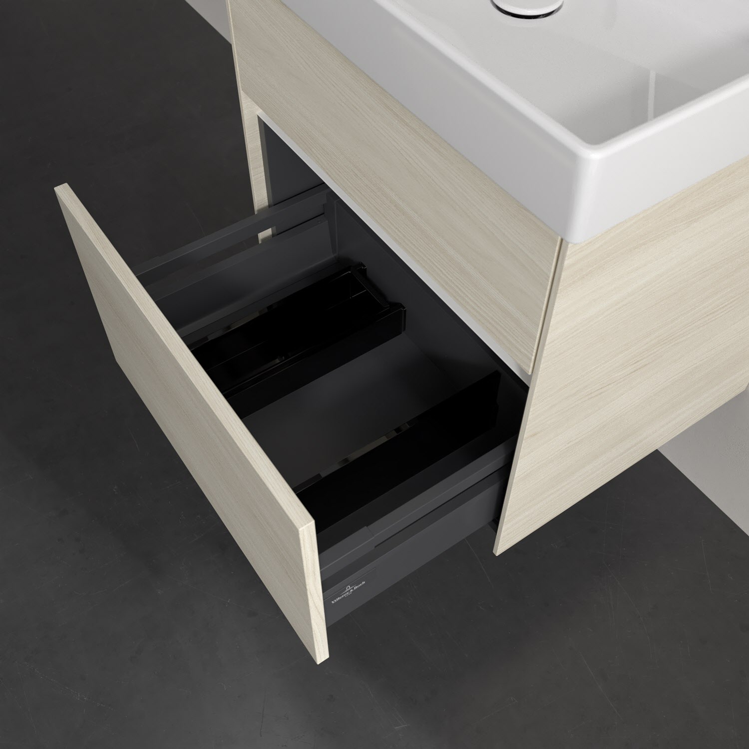- kein Umfallen oder Verrutschen von Pflegeprodukten in den Schubladen dank rutschhemmendem Boden
