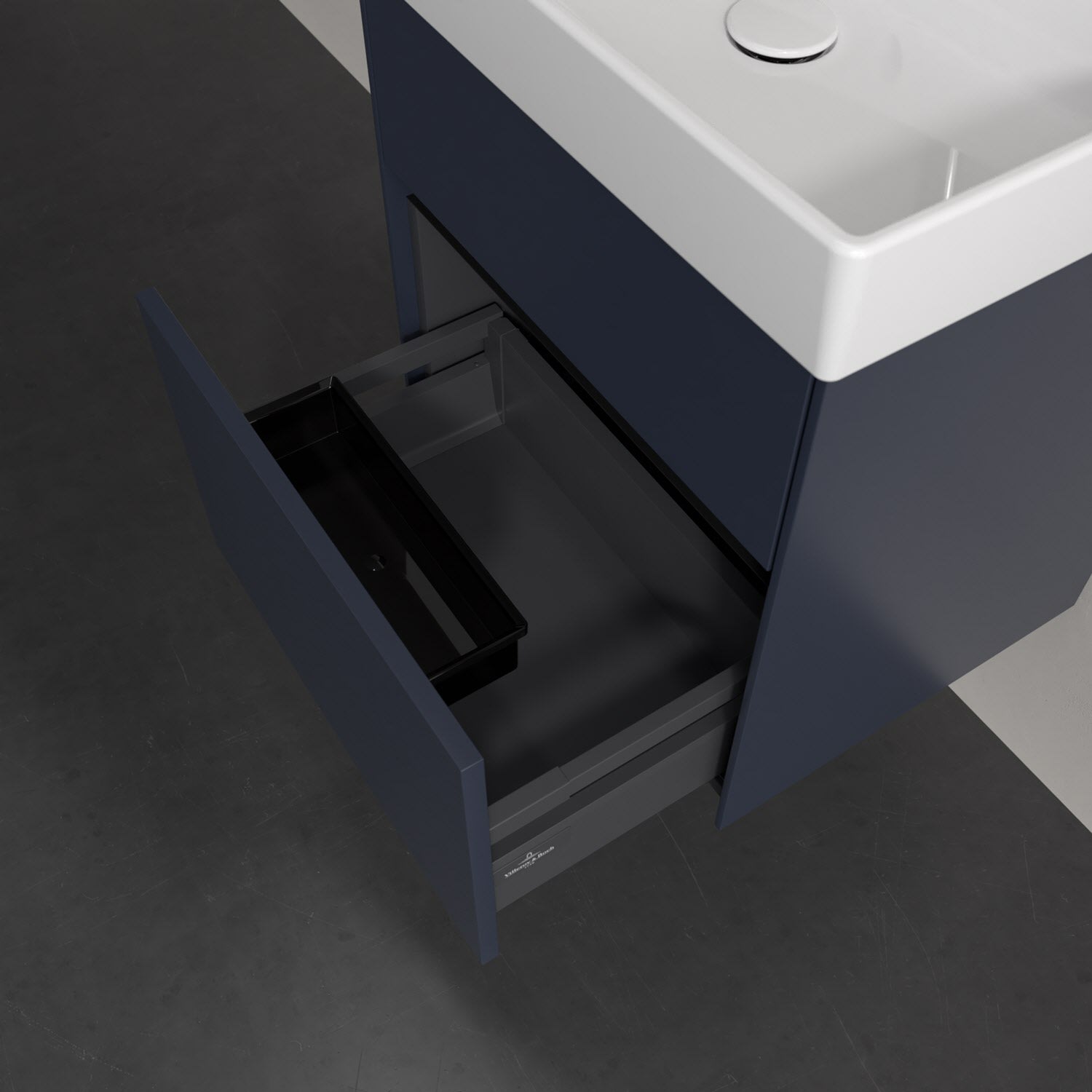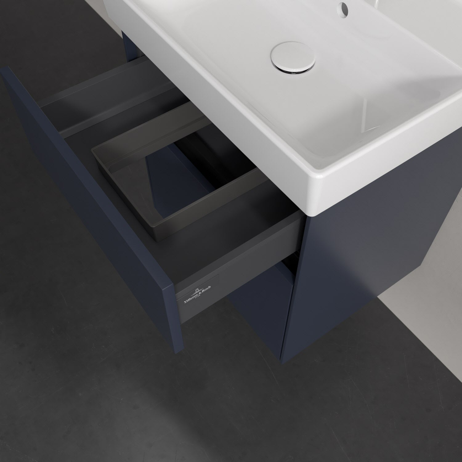 Kompaktes Design und feine Linien: Der Villeroy & Boch Waschbeckenunterschrank aus der Collaro Kollektion mit zwei Auszügen passt perfekt in kleine Bäder oder Gästebäder. Eine integrierte Griffleiste sorgt für eine schlichte, moderne Front. Im Inneren bietet das Möbelstück erstaunlich viel Komfort – ermöglicht durch großzügigen Stauraum und den integrierten Antirutschboden. Die mitgelieferte Accessory Box bietet kleinen Badutensilien oder Kosmetik Platz und sorgt so für den nötigen Überblick. Dank SoftClosing und Selbsteinzug lassen sich die Auszüge nach der Nutzung lautlos schließen. Die Front ist mit einer hochwertigen Lackierung versehen, deren Anti-Fingerprint-Oberfläche unschönen Fingerabdrücken vorbeugt.