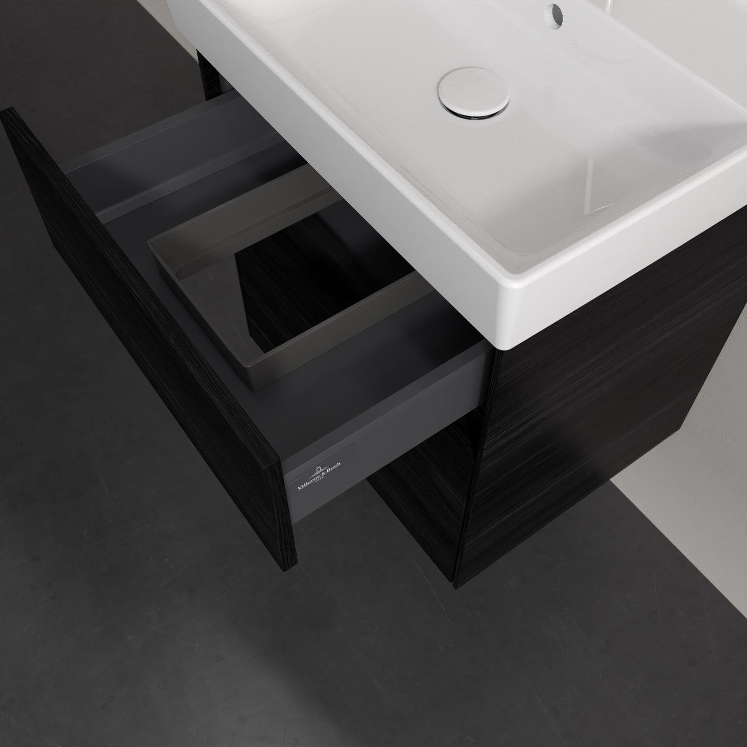 Kompaktes Design und feine Linien: Der Villeroy & Boch Waschbeckenunterschrank aus der Collaro Kollektion mit zwei Auszügen passt perfekt in kleine Bäder oder Gästebäder. Eine integrierte Griffleiste sorgt für eine schlichte, moderne Front. Im Inneren bietet das Möbelstück erstaunlich viel Komfort – ermöglicht durch großzügigen Stauraum und den integrierten Antirutschboden. Die mitgelieferte Accessory Box bietet kleinen Badutensilien oder Kosmetik Platz und sorgt so für den nötigen Überblick. Dank SoftClosing und Selbsteinzug lassen sich die Auszüge nach der Nutzung lautlos schließen. Die Front ist mit einer hochwertigen Lackierung versehen, deren Anti-Fingerprint-Oberfläche unschönen Fingerabdrücken vorbeugt.