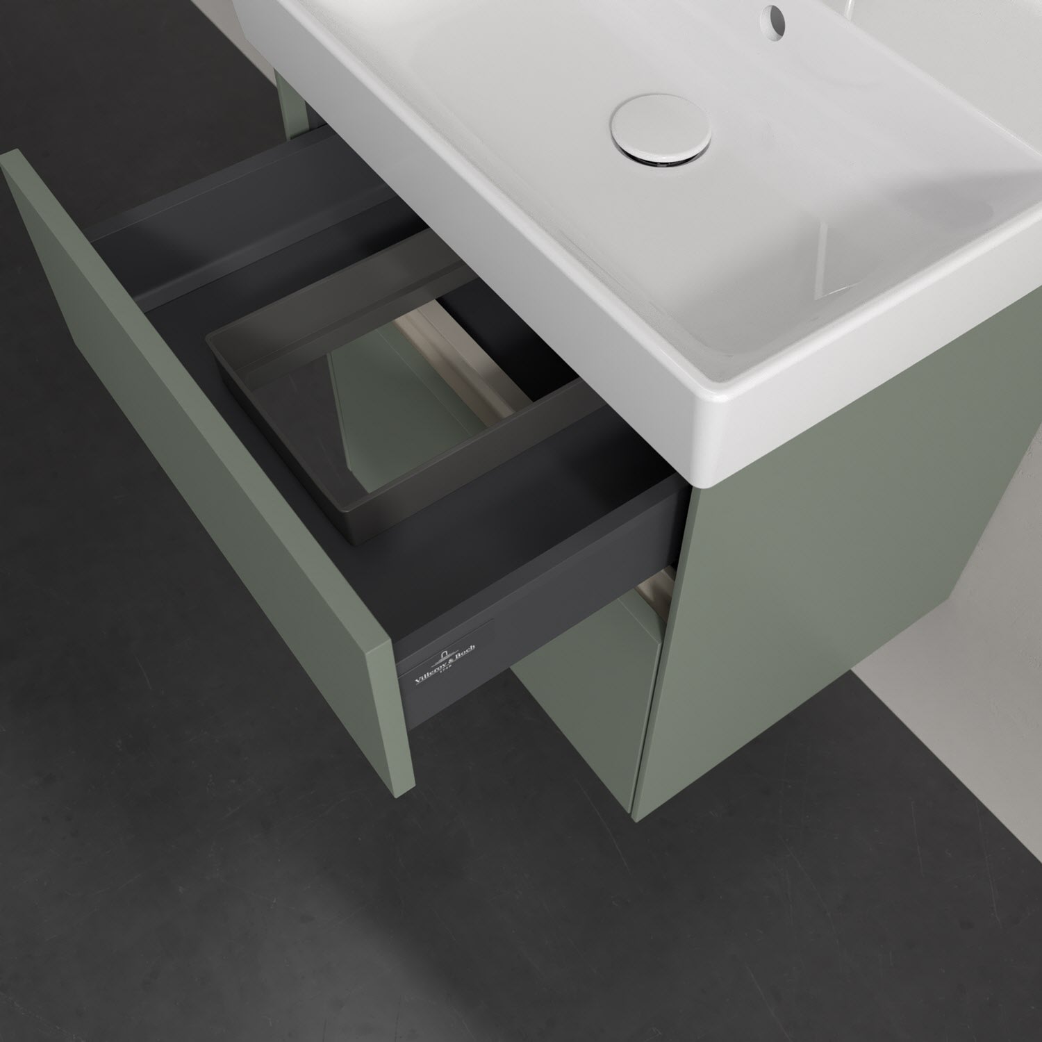 Kompaktes Design und feine Linien: Der Villeroy & Boch Waschbeckenunterschrank aus der Collaro Kollektion mit zwei Auszügen passt perfekt in kleine Bäder oder Gästebäder. Eine Griffleiste mit integrierter, stufenlos einstellbarer LED-Beleuchtung sorgt für eine schlichte, stimmungsvolle Front. Steuern lässt sich das Licht über einen Touch-Sensor seitlich am Unterschrank. Im Inneren bietet das Möbelstück erstaunlich viel Komfort – ermöglicht durch großzügigen Stauraum und den integrierten Antirutschboden. Die mitgelieferte Accessory Box bietet kleinen Badutensilien oder Kosmetik Platz und sorgt so für den nötigen Überblick. Dank SoftClosing und Selbsteinzug lassen sich die Auszüge nach der Nutzung lautlos schließen. Die Front ist mit einer hochwertigen Lackierung versehen, deren Anti-Fingerprint-Oberfläche unschönen Fingerabdrücken vorbeugt.
