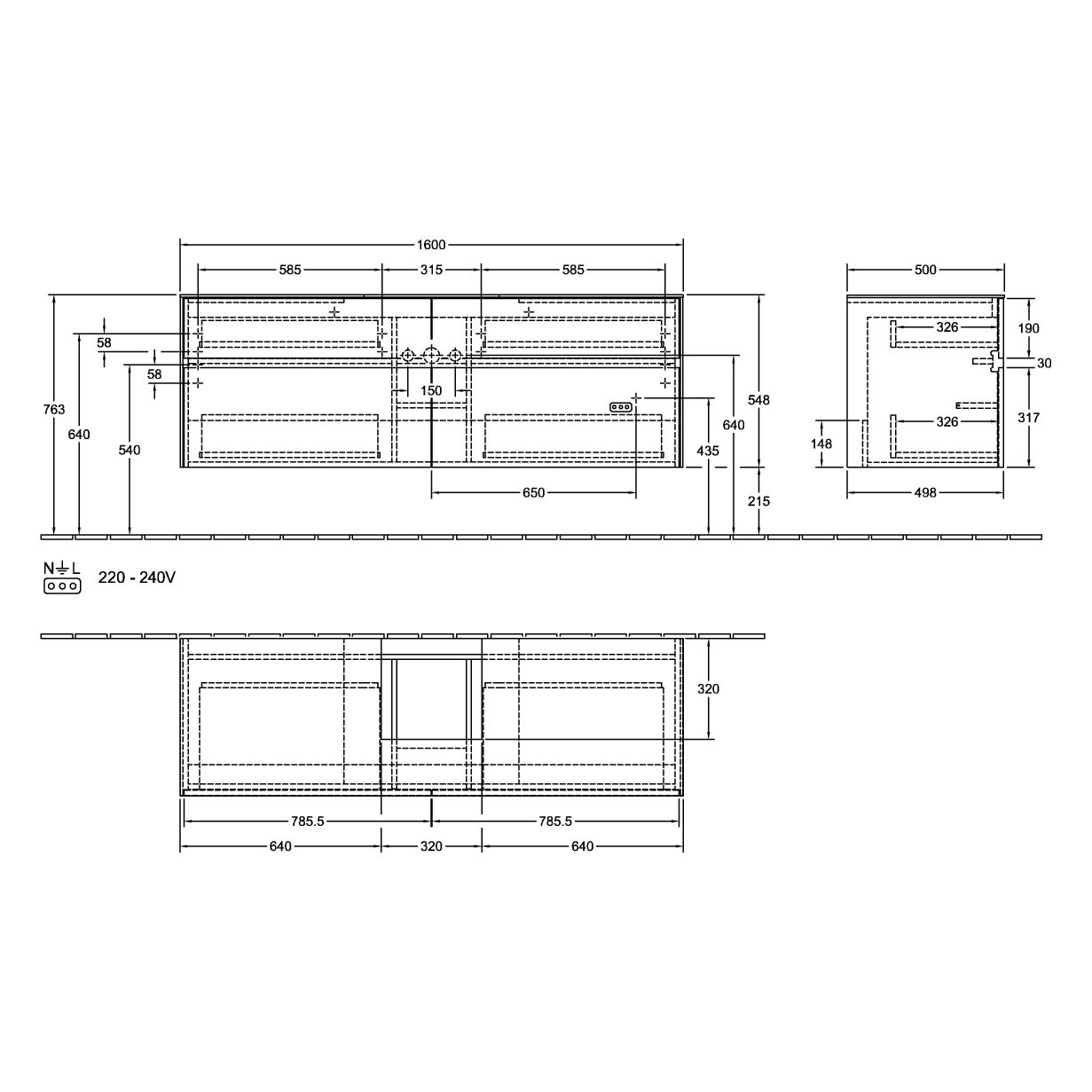 Villeroy & Boch Collaro Waschtischunterschrank 160 x 54,8 cm , mit LED-Beleuchtung, mit 4 Auszügen