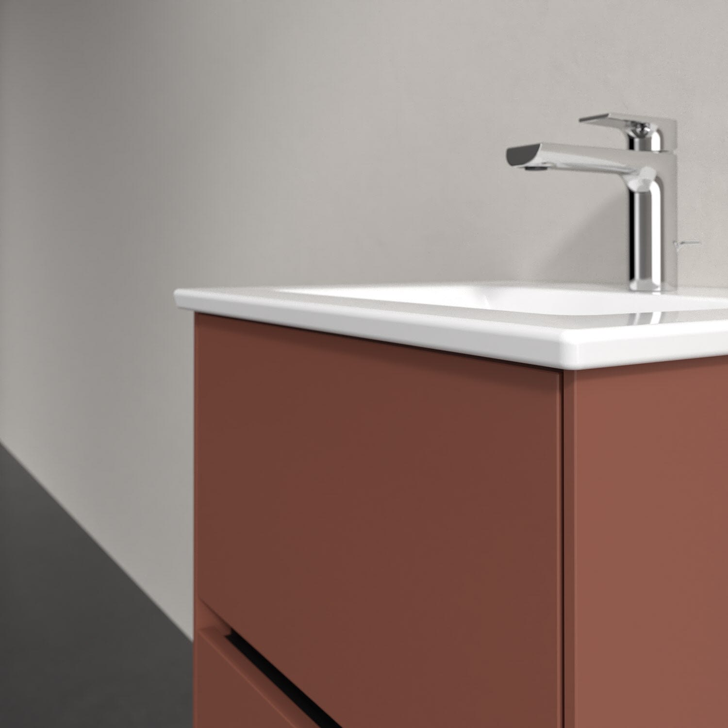 Kompaktes Design und feine Linien: Der Villeroy & Boch Waschbeckenunterschrank aus der Collaro Kollektion mit zwei Auszügen passt perfekt in kleine Bäder oder Gästebäder. Eine Griffleiste mit integrierter, stufenlos einstellbarer LED-Beleuchtung sorgt für eine schlichte, stimmungsvolle Front. Steuern lässt sich das Licht über einen Touch-Sensor seitlich am Unterschrank. Im Inneren bietet das Möbelstück erstaunlich viel Komfort – ermöglicht durch großzügigen Stauraum und den integrierten Antirutschboden. Die mitgelieferte Accessory Box bietet kleinen Badutensilien oder Kosmetik Platz und sorgt so für den nötigen Überblick. Dank SoftClosing und Selbsteinzug lassen sich die Auszüge nach der Nutzung lautlos schließen. Die Front ist mit einer hochwertigen Lackierung versehen, deren Anti-Fingerprint-Oberfläche unschönen Fingerabdrücken vorbeugt.