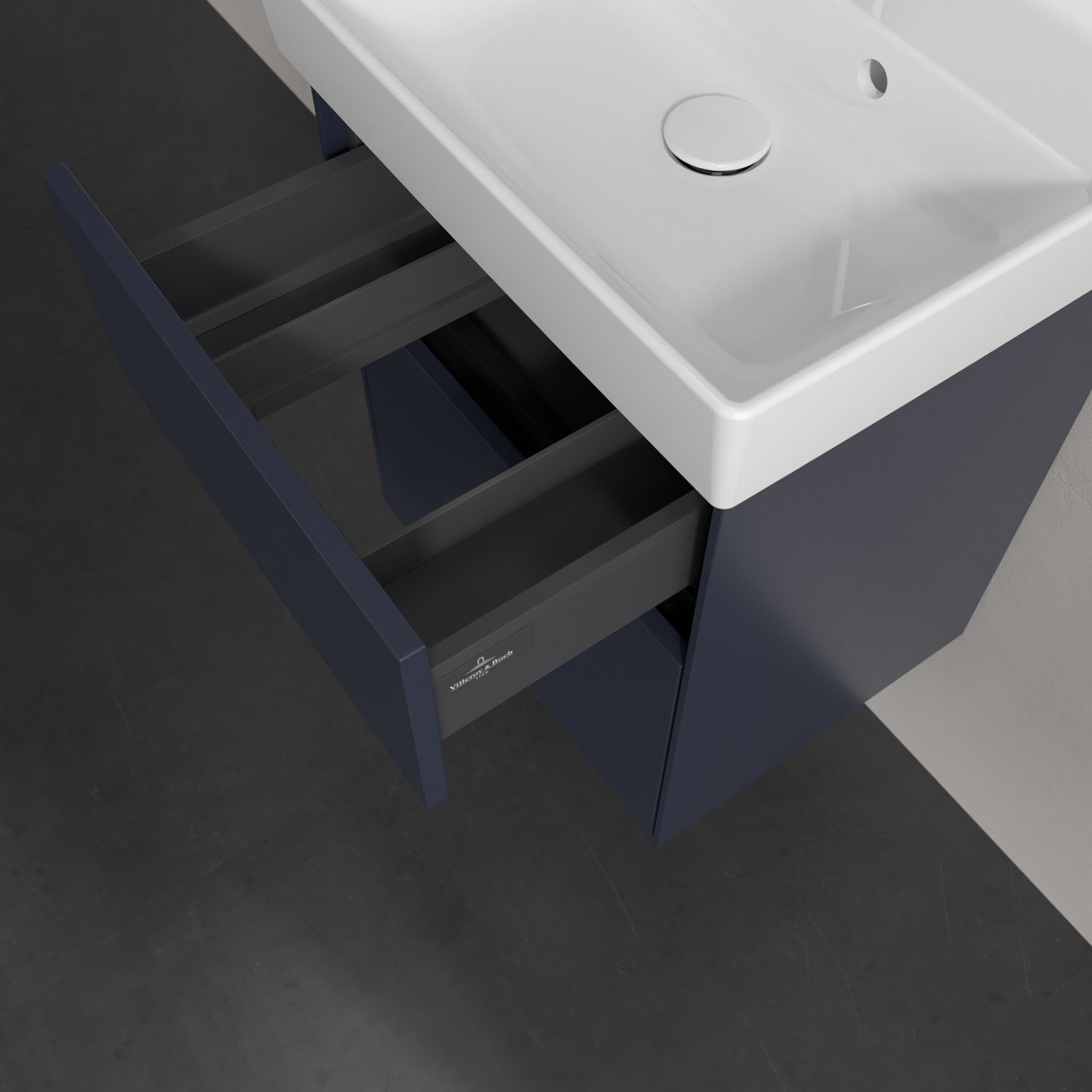 Kompaktes Design und feine Linien: Der Villeroy & Boch Waschbeckenunterschrank aus der Collaro Kollektion mit zwei Auszügen passt perfekt in kleine Bäder oder Gästebäder. Eine integrierte Griffleiste sorgt für eine schlichte, moderne Front. Im Inneren bietet das Möbelstück erstaunlich viel Komfort – ermöglicht durch großzügigen Stauraum und den integrierten Antirutschboden. Die mitgelieferte Accessory Box bietet kleinen Badutensilien oder Kosmetik Platz und sorgt so für den nötigen Überblick. Dank SoftClosing und Selbsteinzug lassen sich die Auszüge nach der Nutzung lautlos schließen. Die Front ist mit einer hochwertigen Lackierung versehen, deren Anti-Fingerprint-Oberfläche unschönen Fingerabdrücken vorbeugt.