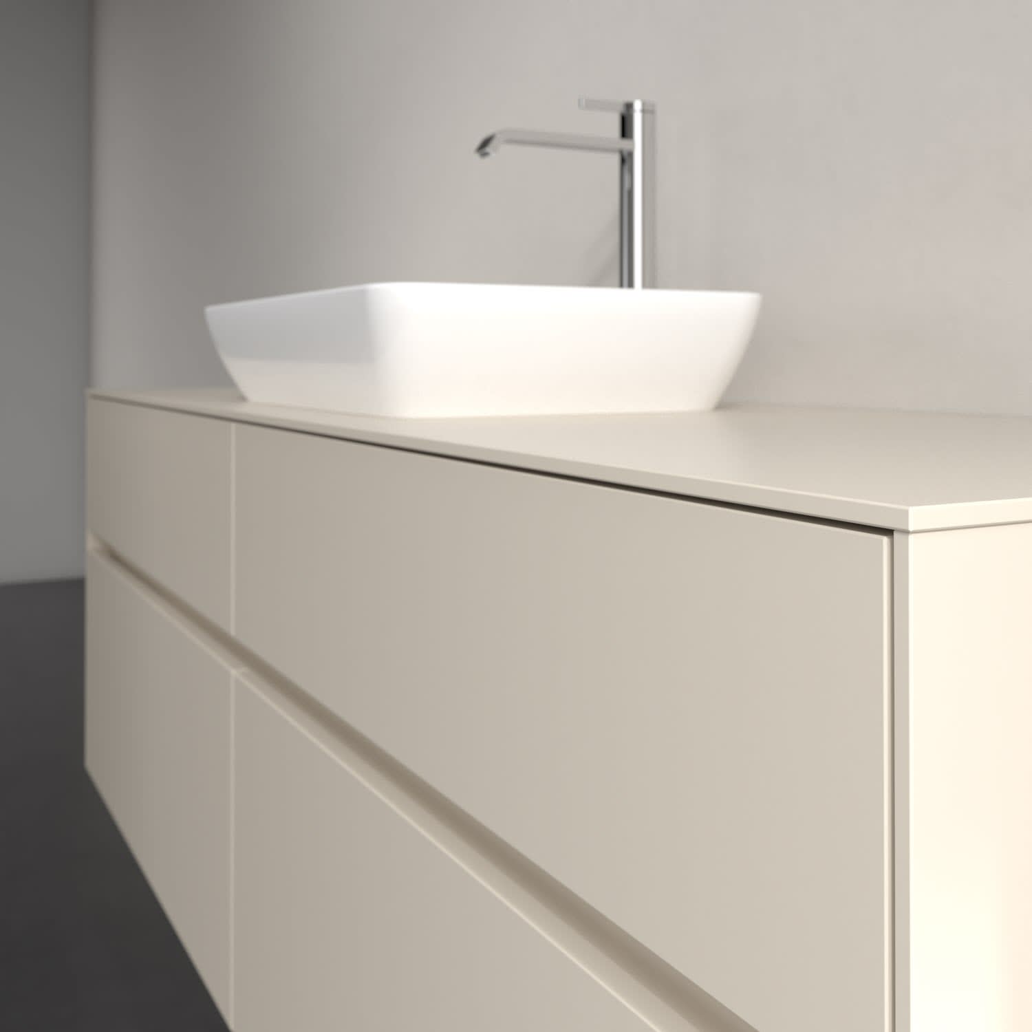Stauraumwunder im zeitgemäßen Design: Der Villeroy & Boch Waschbeckenunterschrank aus der Collaro Kollektion eignet sich besonders für Familienbäder und bietet genau den Platz, der dort benötigt wird. Stimmungsvolles Highlight der schlichten, modernen Front ist die integrierte Griffmulde mit stufenlos einstellbarer LED-Beleuchtung. Im Inneren bietet das Möbelstück mit vier Auszügen erstaunlich viel Komfort – ermöglicht durch großzügiges Platzangebot und den integrierten Antirutschboden. Variabel setzbare Glasabtrennungen und mitgelieferte Accessory Boxen sorgen für den nötigen Überblick. Dank SoftClosing und Selbsteinzug lassen sich die Auszüge nach der Nutzung lautlos schließen. Die Front ist mit einer hochwertigen Lackierung versehen, deren Anti-Fingerprint-Oberfläche unschönen Fingerabdrücken vorbeugt.