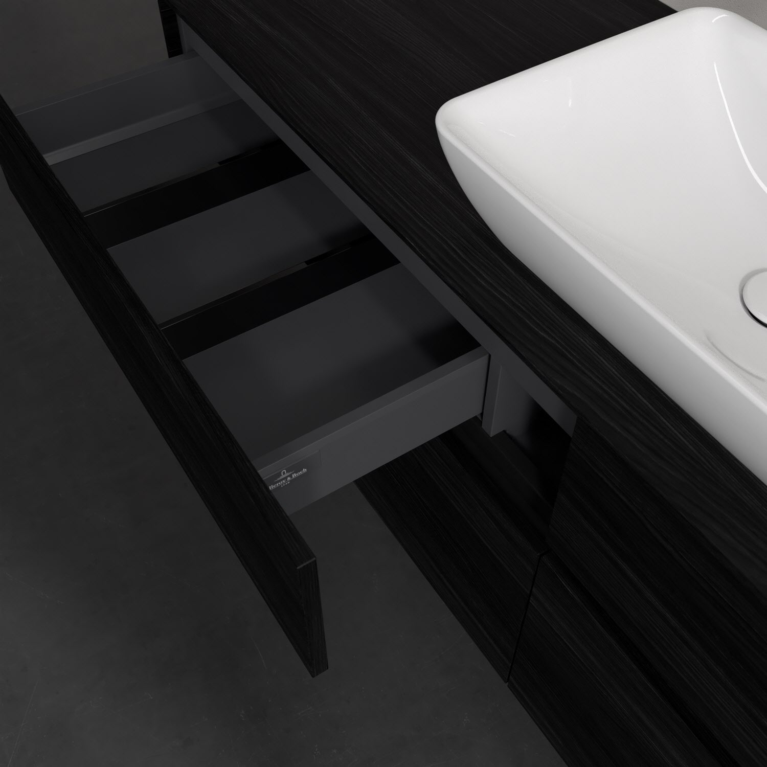 Stauraumwunder im zeitgemäßen Design: Der Villeroy & Boch Waschbeckenunterschrank aus der Collaro Kollektion eignet sich besonders für Familienbäder und bietet genau den Platz, der dort benötigt wird. Stimmungsvolles Highlight der schlichten, modernen Front ist die integrierte Griffmulde mit stufenlos einstellbarer LED-Beleuchtung. Im Inneren bietet das Möbelstück mit vier Auszügen erstaunlich viel Komfort – ermöglicht durch großzügiges Platzangebot und den integrierten Antirutschboden. Variabel setzbare Glasabtrennungen und mitgelieferte Accessory Boxen sorgen für den nötigen Überblick. Dank SoftClosing und Selbsteinzug lassen sich die Auszüge nach der Nutzung lautlos schließen. Die Front ist mit einer hochwertigen Lackierung versehen, deren Anti-Fingerprint-Oberfläche unschönen Fingerabdrücken vorbeugt.