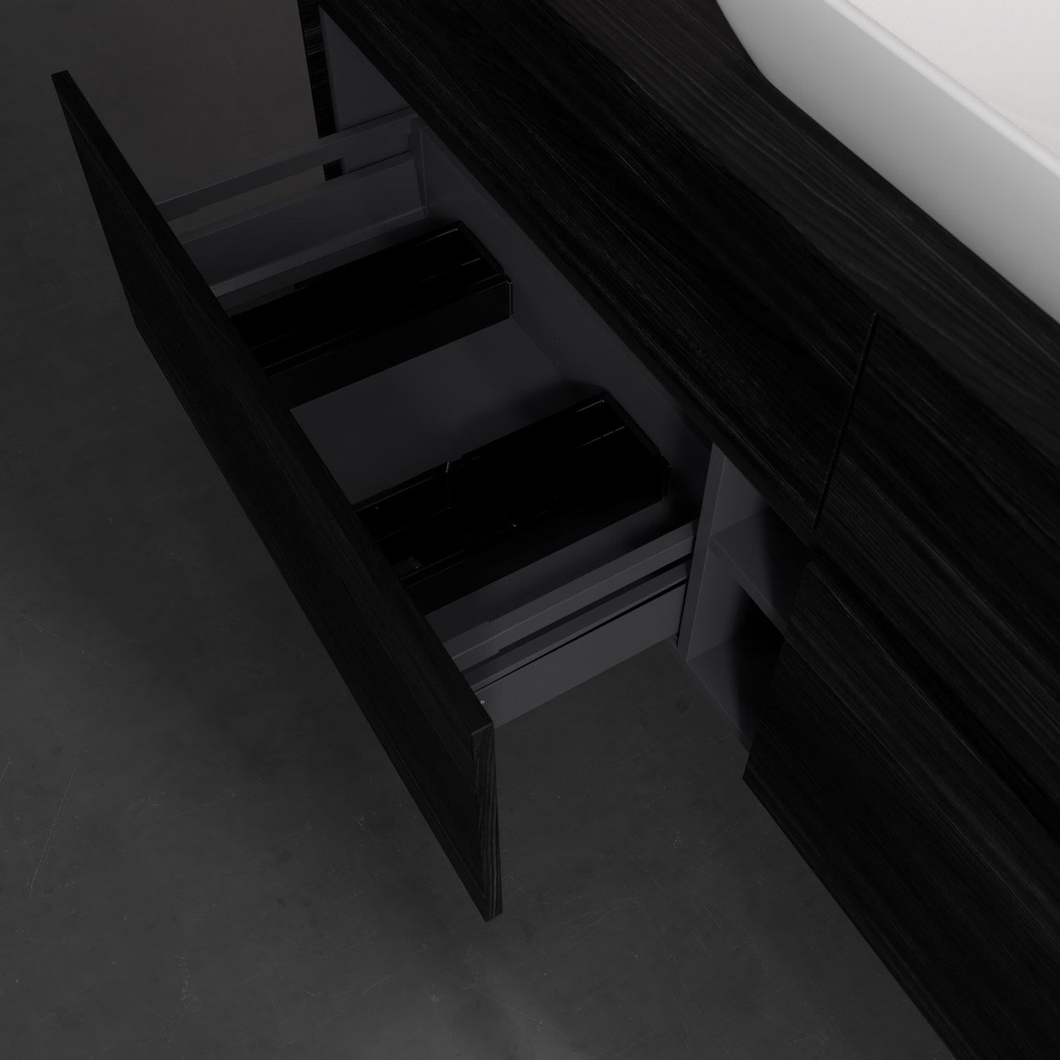 Stauraumwunder im zeitgemäßen Design: Der Villeroy & Boch Waschbeckenunterschrank aus der Collaro Kollektion eignet sich besonders für Familienbäder und bietet genau den Platz, der dort benötigt wird. Eine integrierte Griffleiste sorgt für eine schlichte, moderne Front. Steuern lässt sich das Licht über einen Touch-Sensor seitlich am Unterschrank. Im Inneren bietet das Möbelstück mit vier Auszügen erstaunlich viel Komfort – ermöglicht durch großzügiges Platzangebot und den integrierten Antirutschboden. Variabel setzbare Glasabtrennungen und mitgelieferte Accessory Boxen sorgen für den nötigen Überblick. Dank SoftClosing und Selbsteinzug lassen sich die Auszüge nach der Nutzung lautlos schließen. Die Front ist mit einer hochwertigen Lackierung versehen, deren Anti-Fingerprint-Oberfläche unschönen Fingerabdrücken vorbeugt.