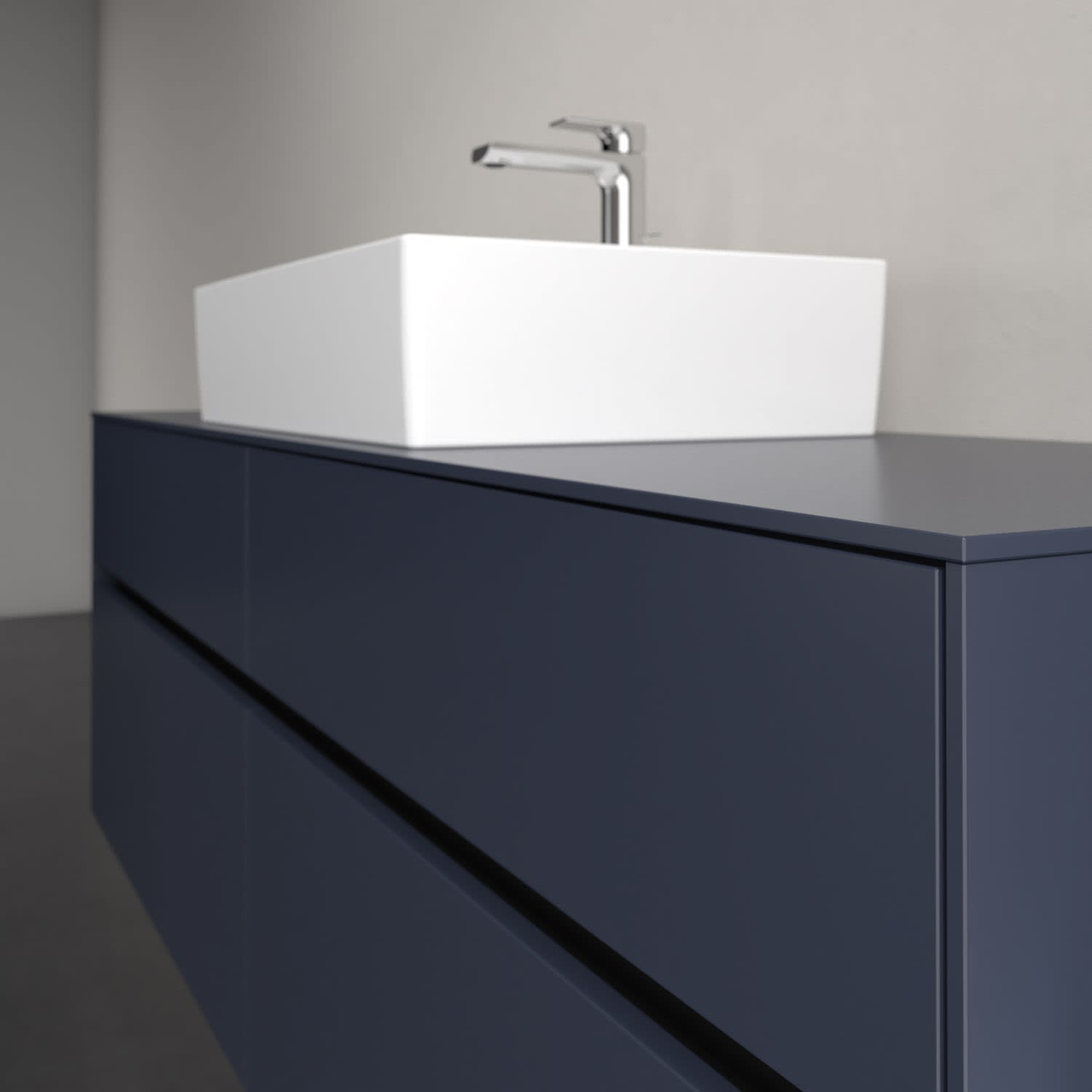 Stauraumwunder im zeitgemäßen Design: Der Villeroy & Boch Waschbeckenunterschrank aus der Collaro Kollektion eignet sich besonders für Familienbäder und bietet genau den Platz, der dort benötigt wird. Stimmungsvolles Highlight der schlichten, modernen Front ist die integrierte Griffmulde mit stufenlos einstellbarer LED-Beleuchtung. Im Inneren bietet das Möbelstück mit vier Auszügen erstaunlich viel Komfort – ermöglicht durch großzügiges Platzangebot und den integrierten Antirutschboden. Variabel setzbare Glasabtrennungen und mitgelieferte Accessory Boxen sorgen für den nötigen Überblick. Dank SoftClosing und Selbsteinzug lassen sich die Auszüge nach der Nutzung lautlos schließen. Die Front ist mit einer hochwertigen Lackierung versehen, deren Anti-Fingerprint-Oberfläche unschönen Fingerabdrücken vorbeugt.
