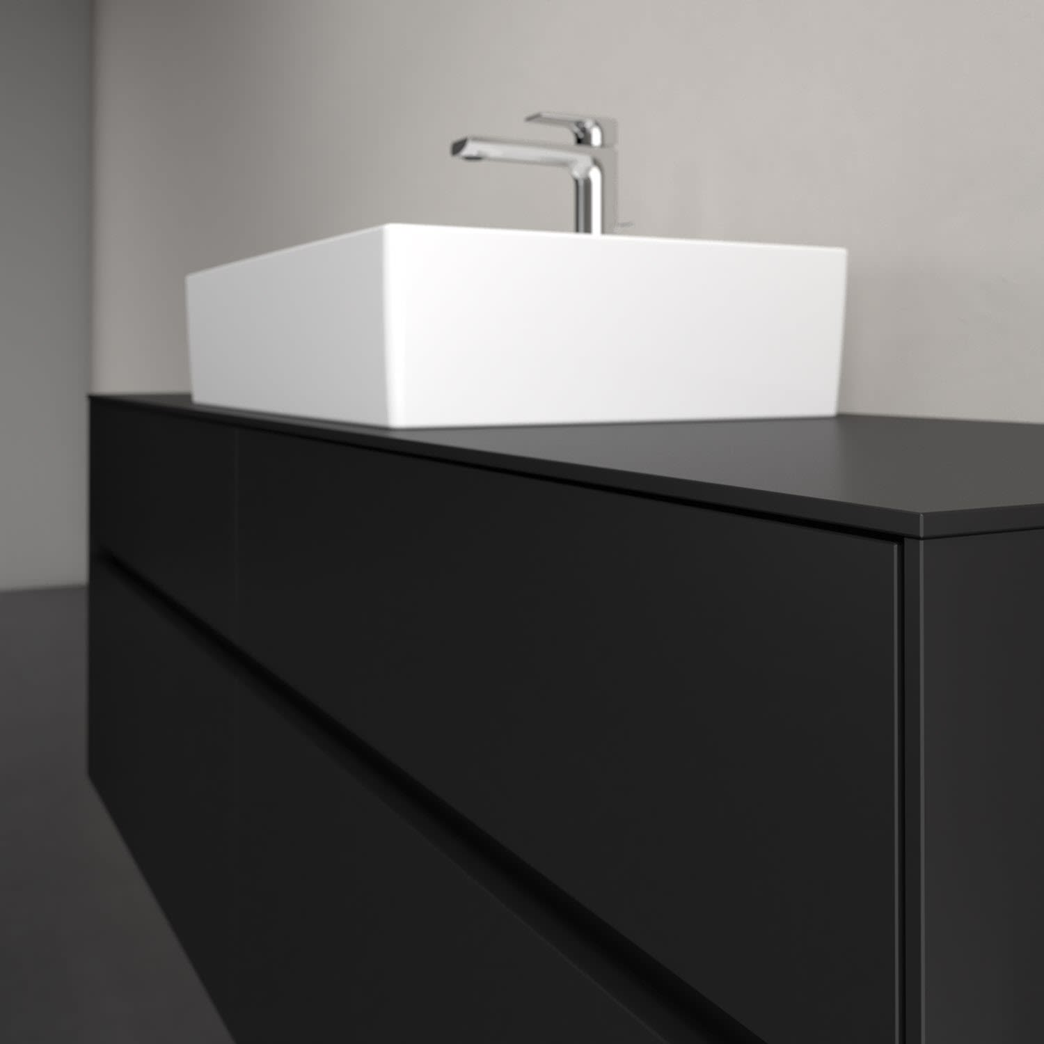 Stauraumwunder im zeitgemäßen Design: Der Villeroy & Boch Waschbeckenunterschrank aus der Collaro Kollektion eignet sich besonders für Familienbäder und bietet genau den Platz, der dort benötigt wird. Eine integrierte Griffleiste sorgt für eine schlichte, moderne Front. Steuern lässt sich das Licht über einen Touch-Sensor seitlich am Unterschrank. Im Inneren bietet das Möbelstück mit vier Auszügen erstaunlich viel Komfort – ermöglicht durch großzügiges Platzangebot und den integrierten Antirutschboden. Variabel setzbare Glasabtrennungen und mitgelieferte Accessory Boxen sorgen für den nötigen Überblick. Dank SoftClosing und Selbsteinzug lassen sich die Auszüge nach der Nutzung lautlos schließen. Die Front ist mit einer hochwertigen Lackierung versehen, deren Anti-Fingerprint-Oberfläche unschönen Fingerabdrücken vorbeugt.