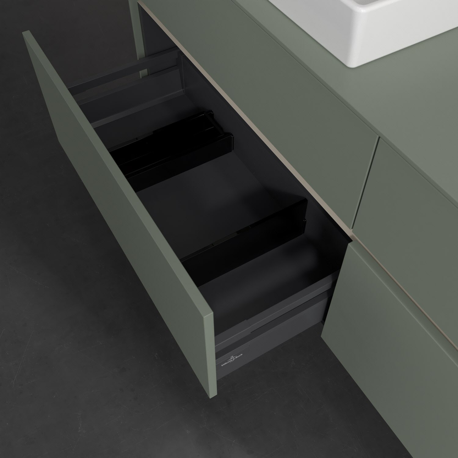 - kein Umfallen oder Verrutschen von Pflegeprodukten in den Schubladen dank rutschhemmendem Boden