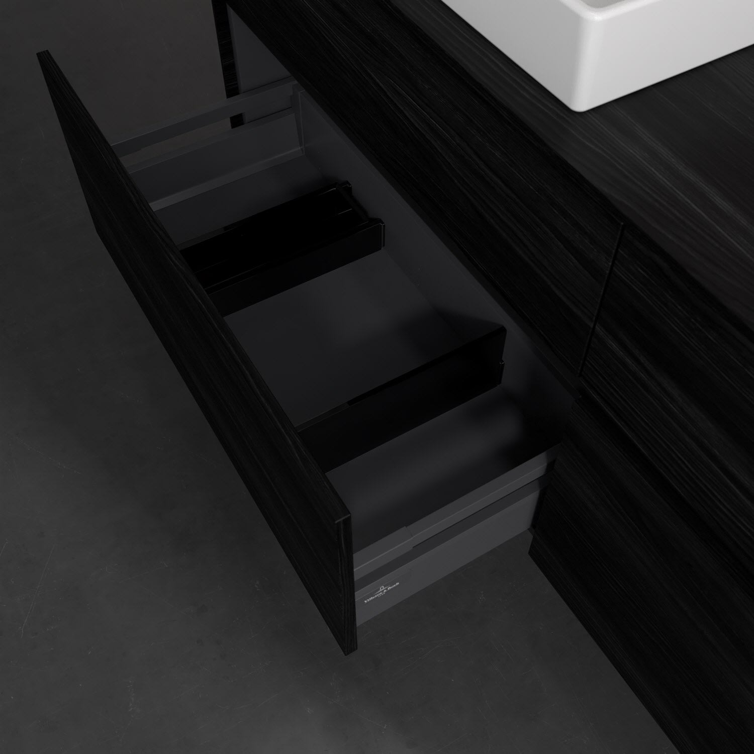 - kein Umfallen oder Verrutschen von Pflegeprodukten in den Schubladen dank rutschhemmendem Boden