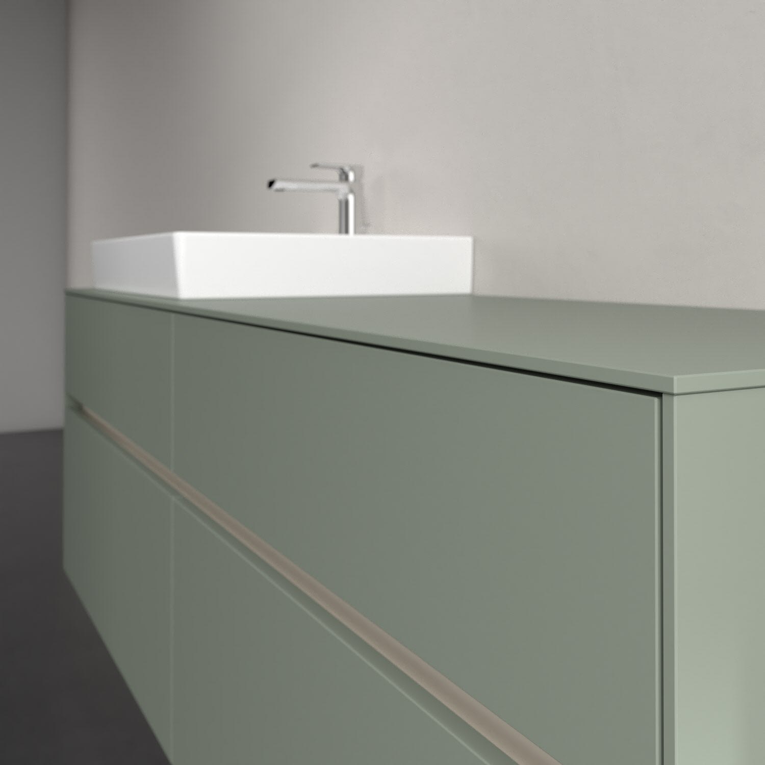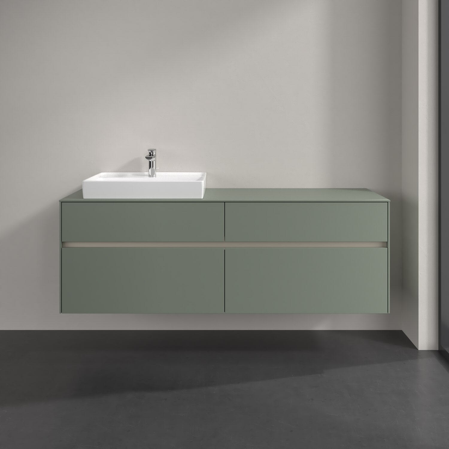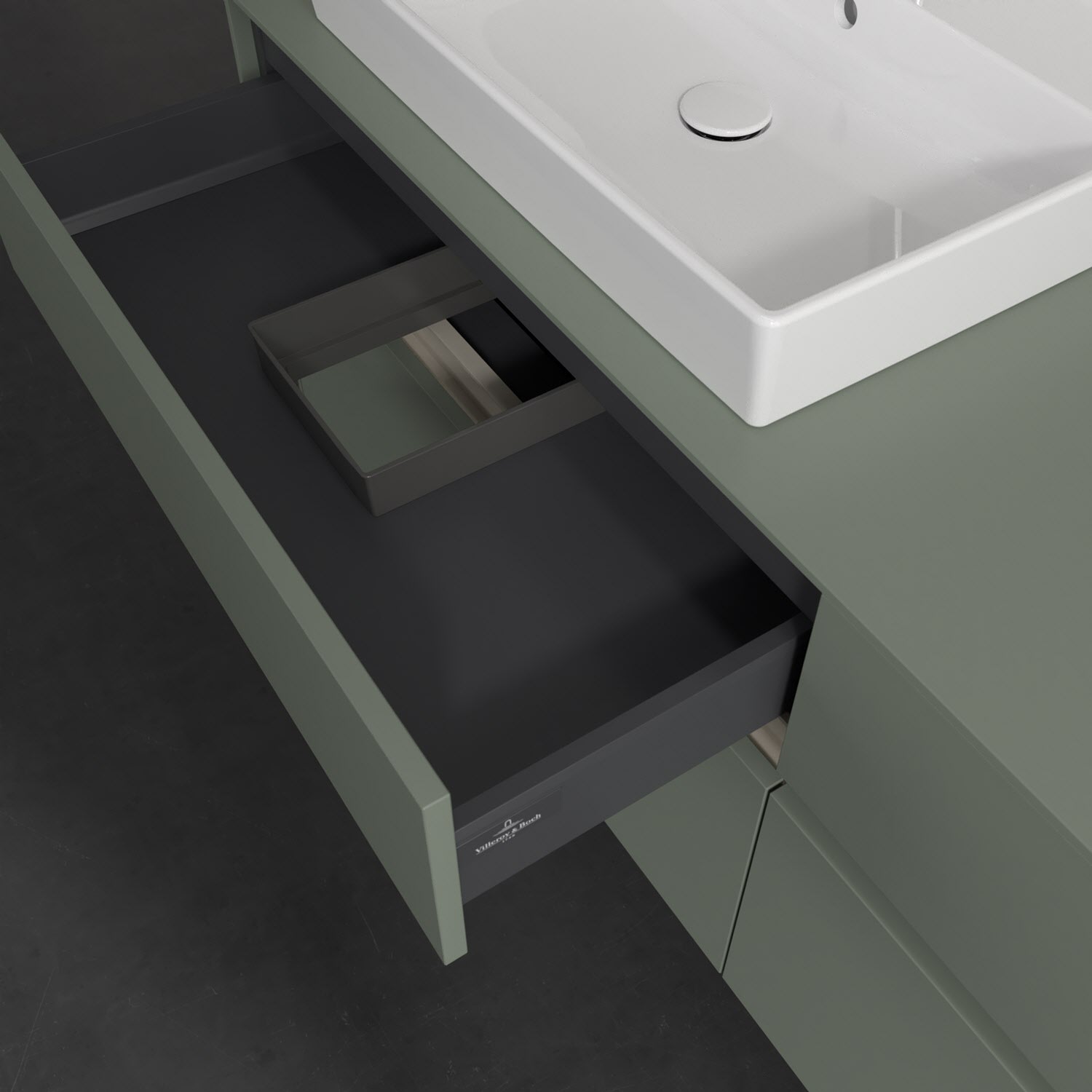 Stauraumwunder im zeitgemäßen Design: Der Villeroy & Boch Waschbeckenunterschrank aus der Collaro Kollektion eignet sich besonders für Familienbäder und bietet genau den Platz, der dort benötigt wird. Stimmungsvolles Highlight der schlichten, modernen Front ist die integrierte Griffmulde mit stufenlos einstellbarer LED-Beleuchtung. Steuern lässt sie sich über einen Touch-Sensor seitlich am Unterschrank. Im Inneren bietet das Möbelstück mit vier Auszügen erstaunlich viel Komfort – ermöglicht durch großzügiges Platzangebot und den integrierten Antirutschboden. Variabel setzbare Glasabtrennungen und mitgelieferte Accessory Boxen sorgen für den nötigen Überblick. Dank SoftClosing und Selbsteinzug lassen sich die Auszüge nach der Nutzung lautlos schließen. Die Front ist mit einer hochwertigen Lackierung versehen, deren Anti-Fingerprint-Oberfläche unschönen Fingerabdrücken vorbeugt.