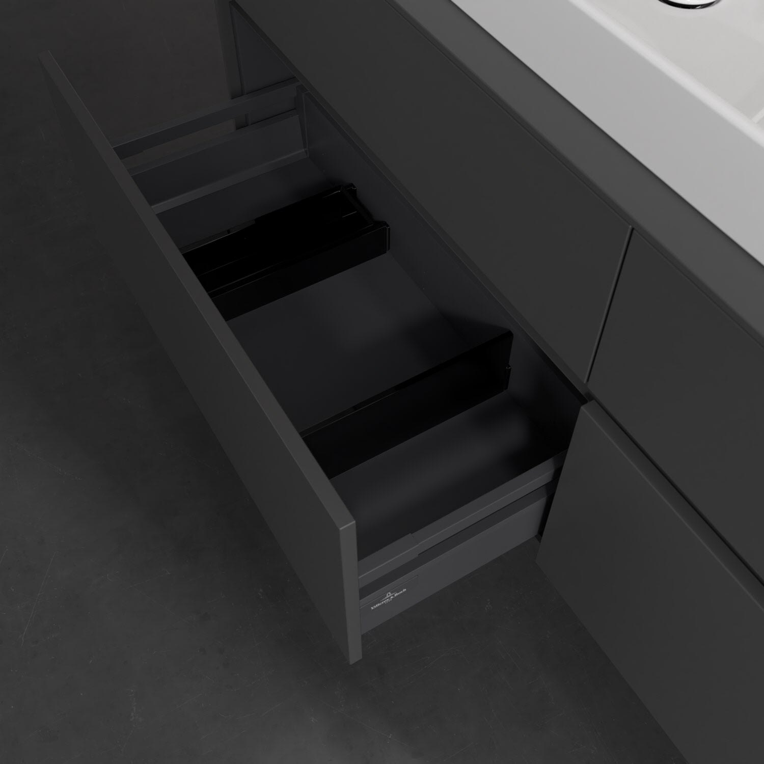 - kein Umfallen oder Verrutschen von Pflegeprodukten in den Schubladen dank rutschhemmendem Boden
