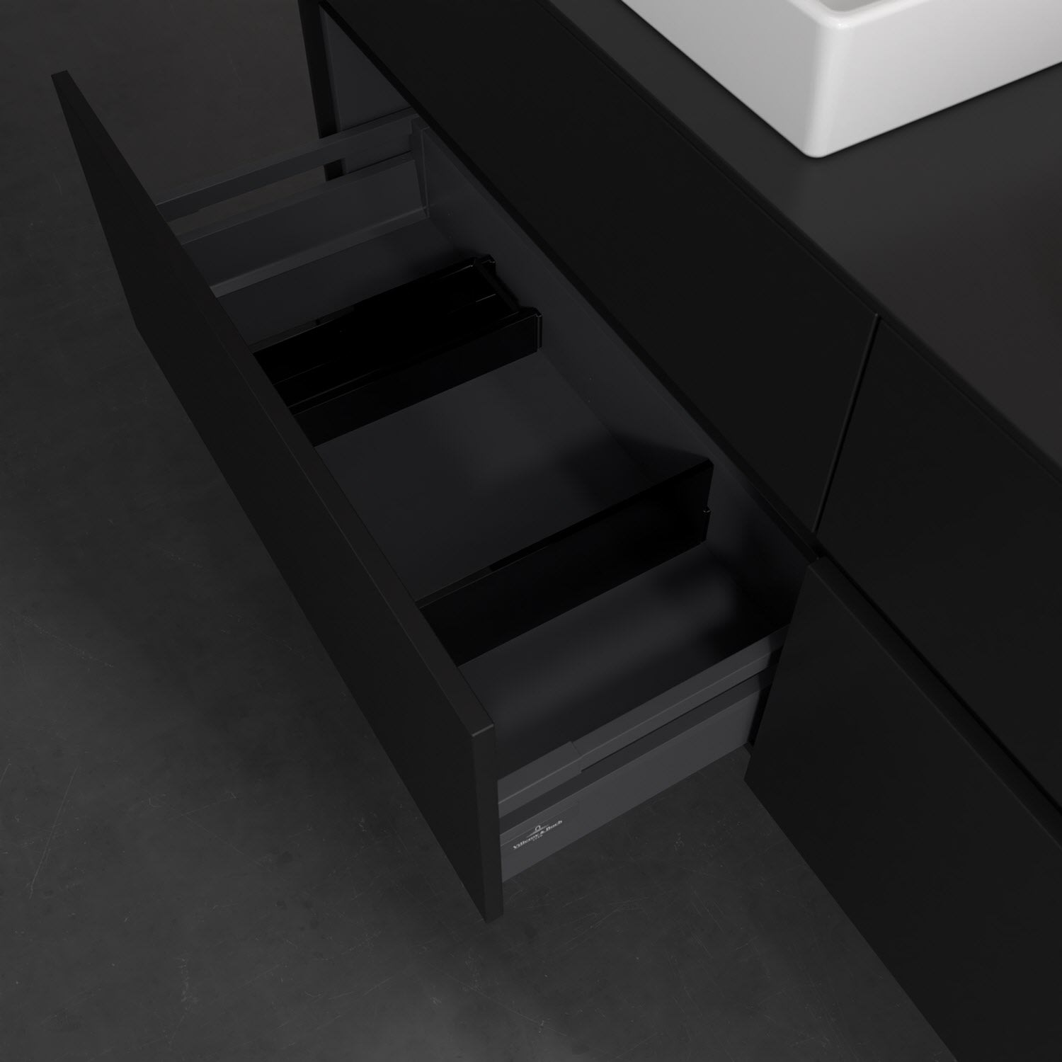 - kein Umfallen oder Verrutschen von Pflegeprodukten in den Schubladen dank rutschhemmendem Boden