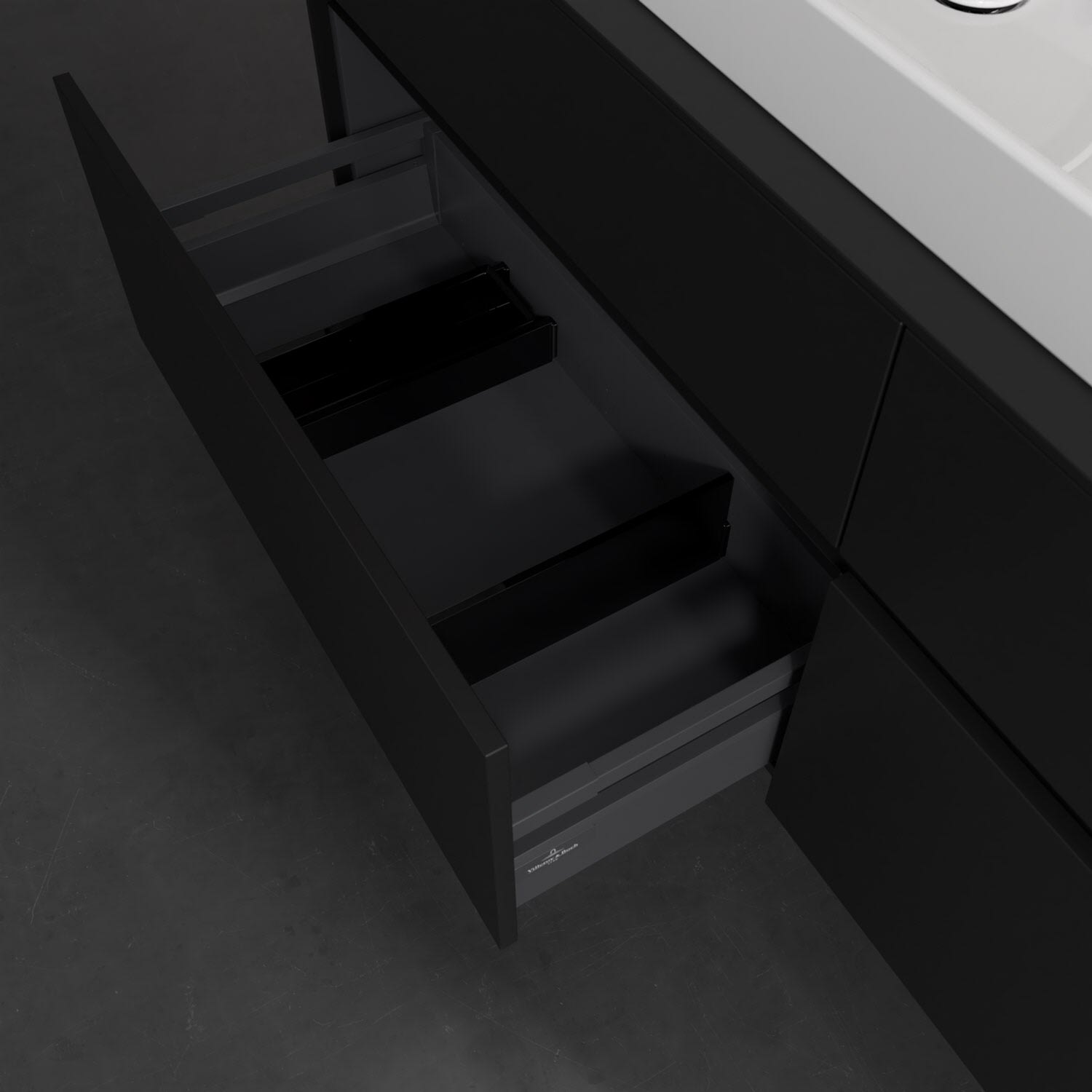 - kein Umfallen oder Verrutschen von Pflegeprodukten in den Schubladen dank rutschhemmendem Boden