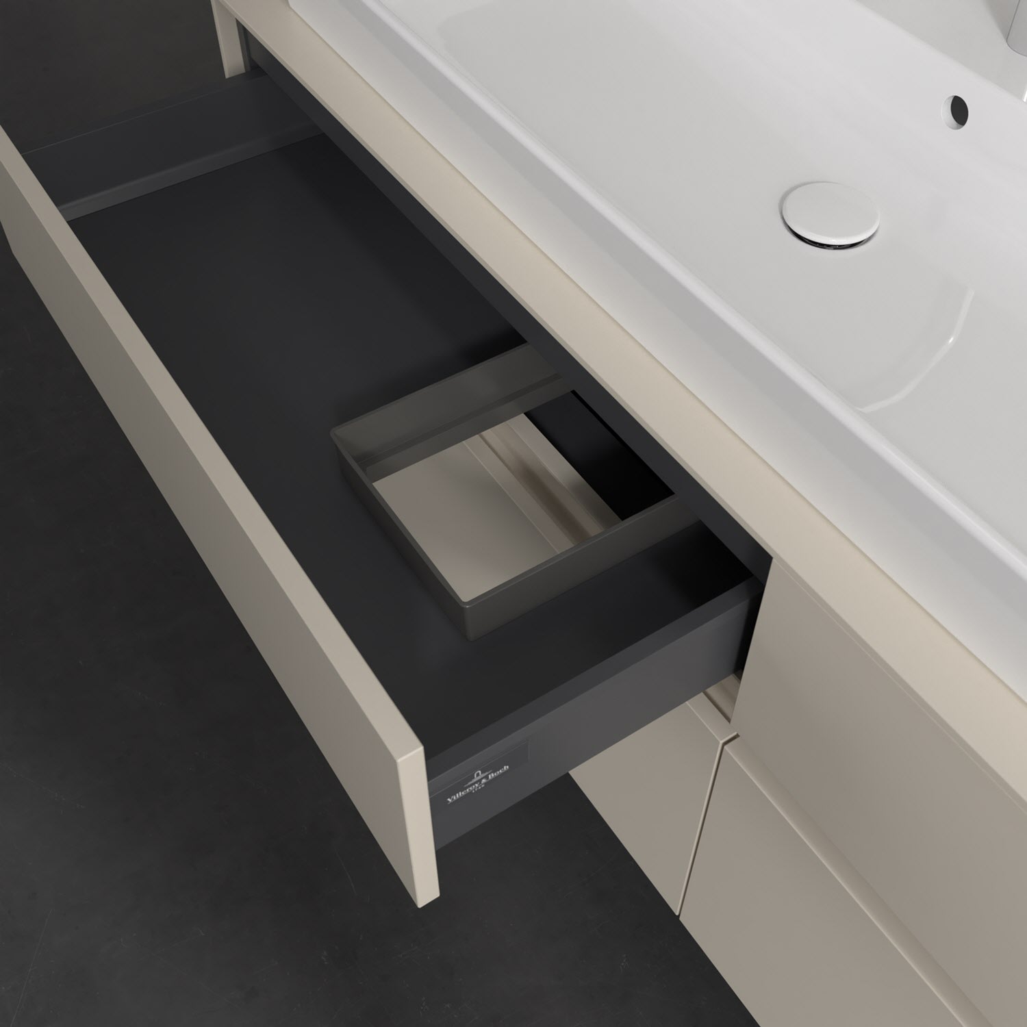 - kein Umfallen oder Verrutschen von Pflegeprodukten in den Schubladen dank rutschhemmendem Boden