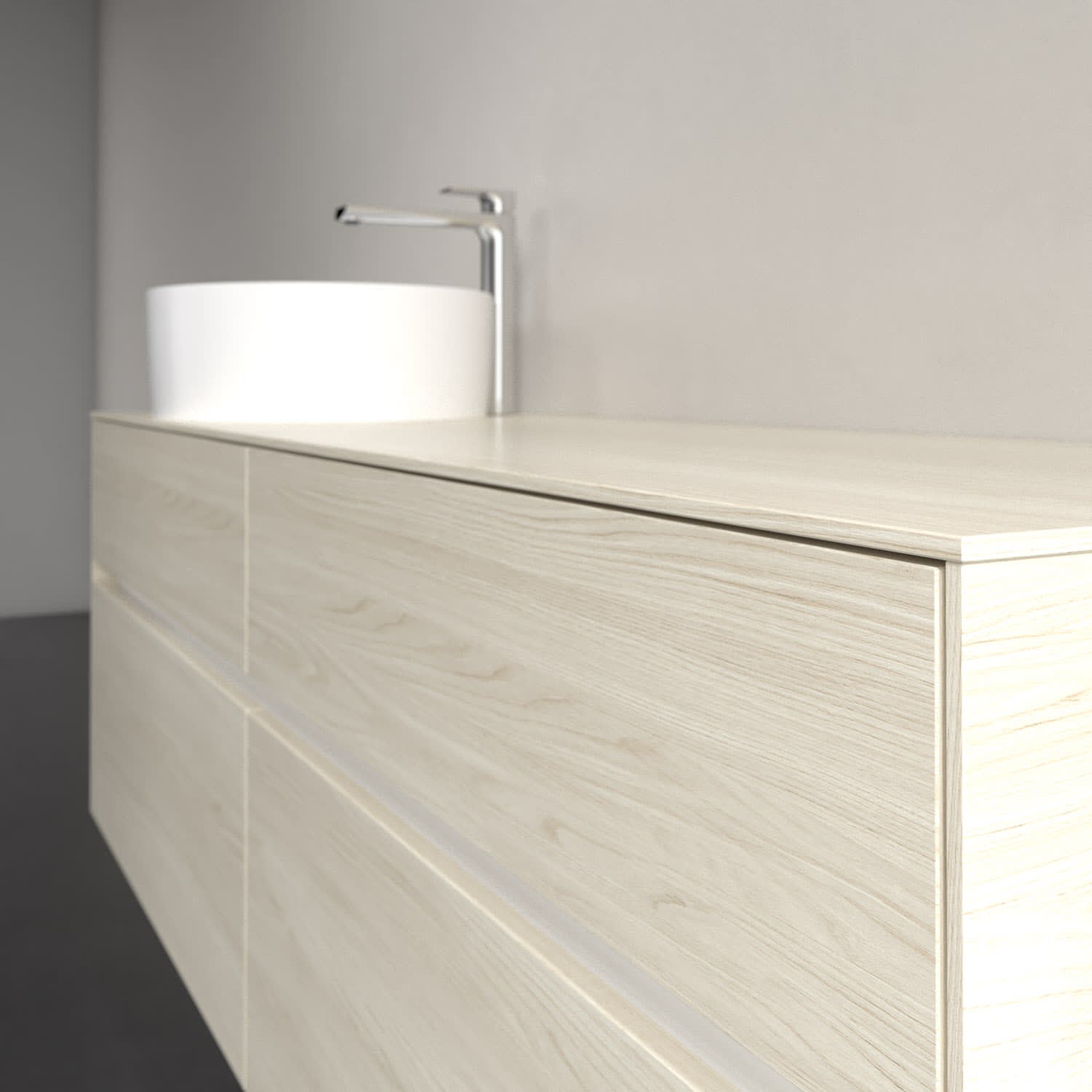 Stauraumwunder im zeitgemäßen Design: Der Villeroy & Boch Waschbeckenunterschrank aus der Collaro Kollektion eignet sich besonders für Familienbäder und bietet genau den Platz, der dort benötigt wird. Eine integrierte Griffleiste sorgt für eine schlichte, moderne Front. Im Inneren bietet das Möbelstück mit vier Auszügen erstaunlich viel Komfort – ermöglicht durch großzügiges Platzangebot und den integrierten Antirutschboden. Variabel setzbare Glasabtrennungen und mitgelieferte Accessory Boxen sorgen für den nötigen Überblick. Dank SoftClosing und Selbsteinzug lassen sich die Auszüge nach der Nutzung lautlos schließen. Für eine besonders leichte Reinigung sorgt die pflegeleichte Direktbeschichtung.