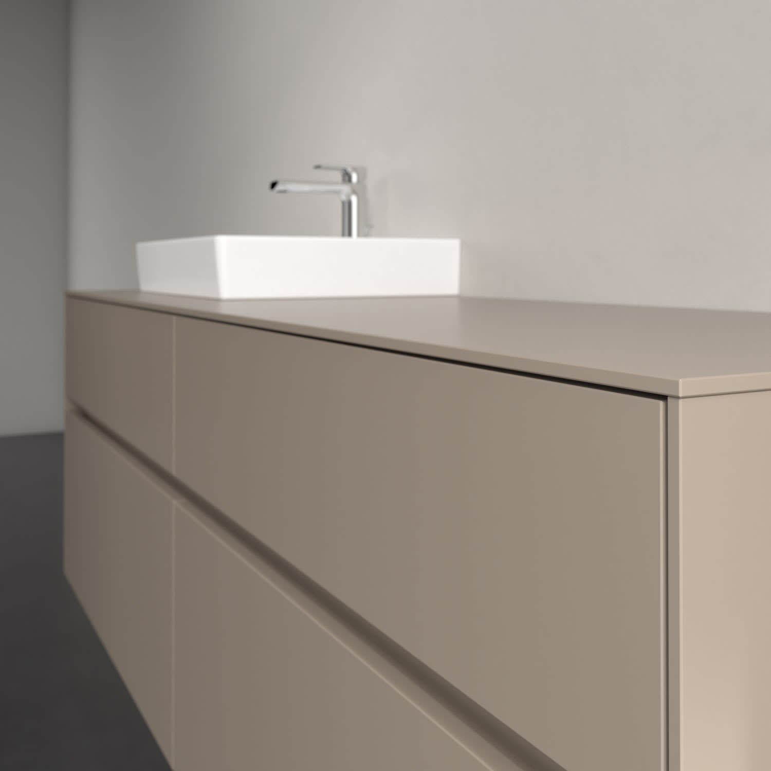 Stauraumwunder im zeitgemäßen Design: Der Villeroy & Boch Waschbeckenunterschrank aus der Collaro Kollektion eignet sich besonders für Familienbäder und bietet genau den Platz, der dort benötigt wird. Stimmungsvolles Highlight der schlichten, modernen Front ist die integrierte Griffmulde mit stufenlos einstellbarer LED-Beleuchtung. Im Inneren bietet das Möbelstück mit vier Auszügen erstaunlich viel Komfort – ermöglicht durch großzügiges Platzangebot und den integrierten Antirutschboden. Variabel setzbare Glasabtrennungen und mitgelieferte Accessory Boxen sorgen für den nötigen Überblick. Dank SoftClosing und Selbsteinzug lassen sich die Auszüge nach der Nutzung lautlos schließen. Die Front ist mit einer hochwertigen Lackierung versehen, deren Anti-Fingerprint-Oberfläche unschönen Fingerabdrücken vorbeugt.