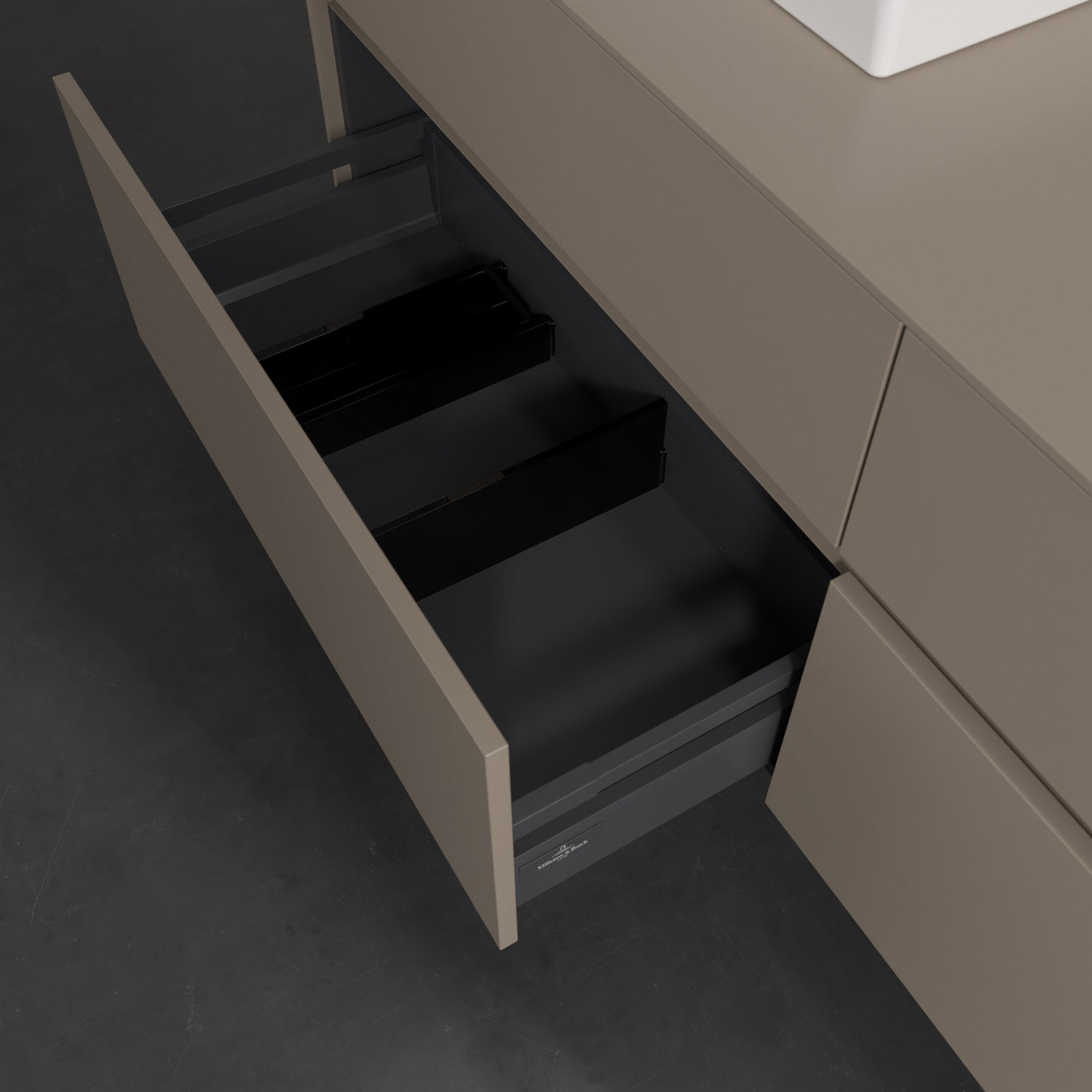 - kein Umfallen oder Verrutschen von Pflegeprodukten in den Schubladen dank rutschhemmendem Boden