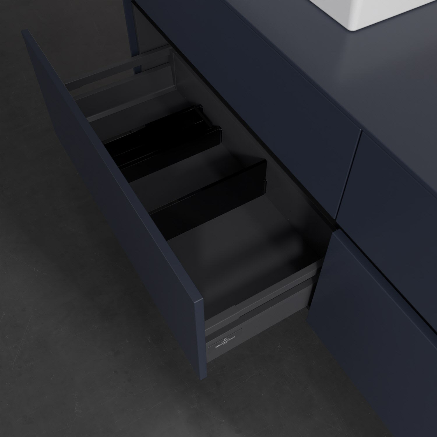 - kein Umfallen oder Verrutschen von Pflegeprodukten in den Schubladen dank rutschhemmendem Boden