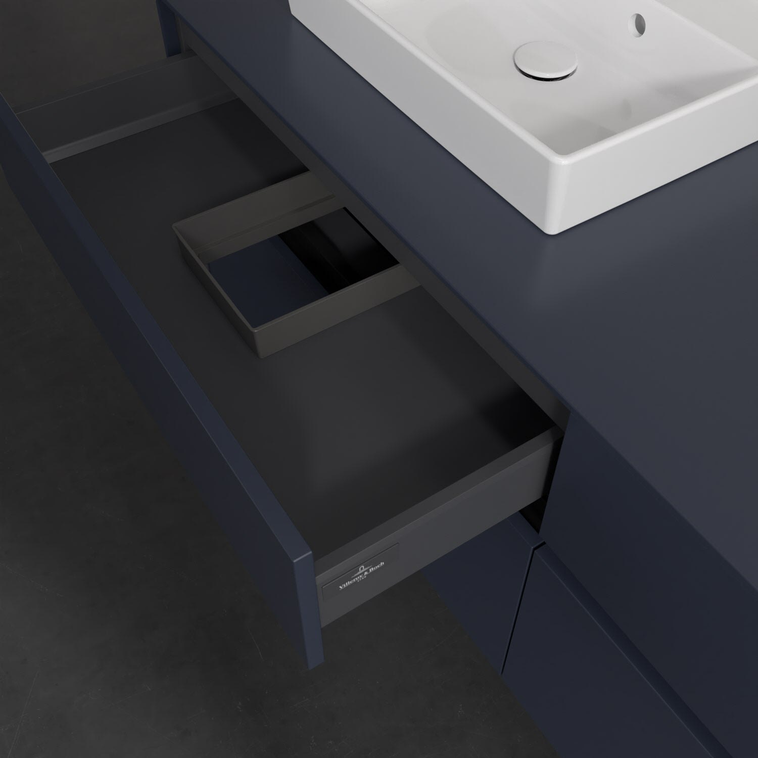 Stauraumwunder im zeitgemäßen Design: Der Villeroy & Boch Waschbeckenunterschrank aus der Collaro Kollektion eignet sich besonders für Familienbäder und bietet genau den Platz, der dort benötigt wird. Stimmungsvolles Highlight der schlichten, modernen Front ist die integrierte Griffmulde mit stufenlos einstellbarer LED-Beleuchtung. Im Inneren bietet das Möbelstück mit vier Auszügen erstaunlich viel Komfort – ermöglicht durch großzügiges Platzangebot und den integrierten Antirutschboden. Variabel setzbare Glasabtrennungen und mitgelieferte Accessory Boxen sorgen für den nötigen Überblick. Dank SoftClosing und Selbsteinzug lassen sich die Auszüge nach der Nutzung lautlos schließen. Die Front ist mit einer hochwertigen Lackierung versehen, deren Anti-Fingerprint-Oberfläche unschönen Fingerabdrücken vorbeugt.