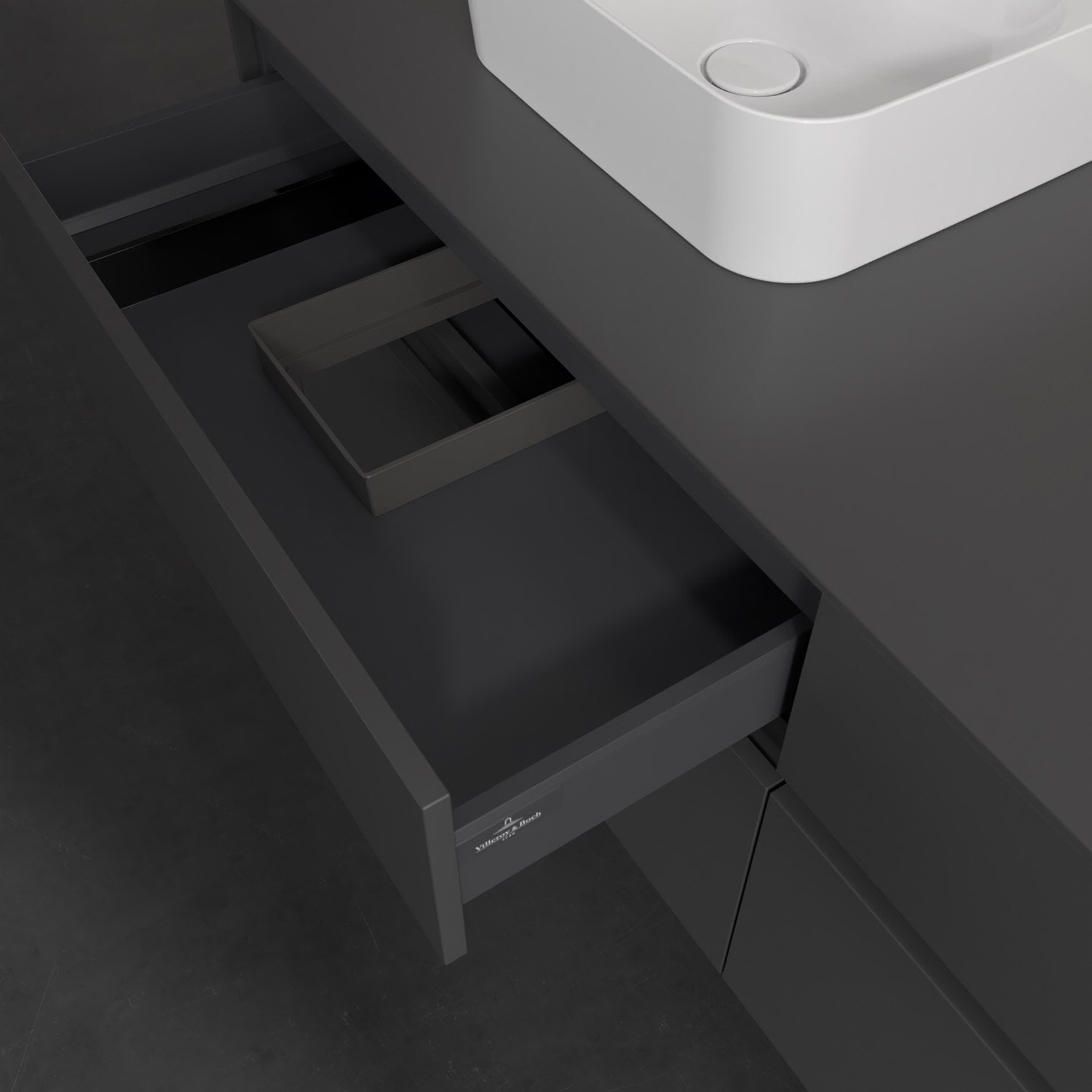 Stauraumwunder im zeitgemäßen Design: Der Villeroy & Boch Waschbeckenunterschrank aus der Collaro Kollektion eignet sich besonders für Familienbäder und bietet genau den Platz, der dort benötigt wird. Stimmungsvolles Highlight der schlichten, modernen Front ist die integrierte Griffmulde mit stufenlos einstellbarer LED-Beleuchtung. Im Inneren bietet das Möbelstück mit vier Auszügen erstaunlich viel Komfort – ermöglicht durch großzügiges Platzangebot und den integrierten Antirutschboden. Variabel setzbare Glasabtrennungen und mitgelieferte Accessory Boxen sorgen für den nötigen Überblick. Dank SoftClosing und Selbsteinzug lassen sich die Auszüge nach der Nutzung lautlos schließen. Die Front ist mit einer hochwertigen Lackierung versehen, deren Anti-Fingerprint-Oberfläche unschönen Fingerabdrücken vorbeugt.