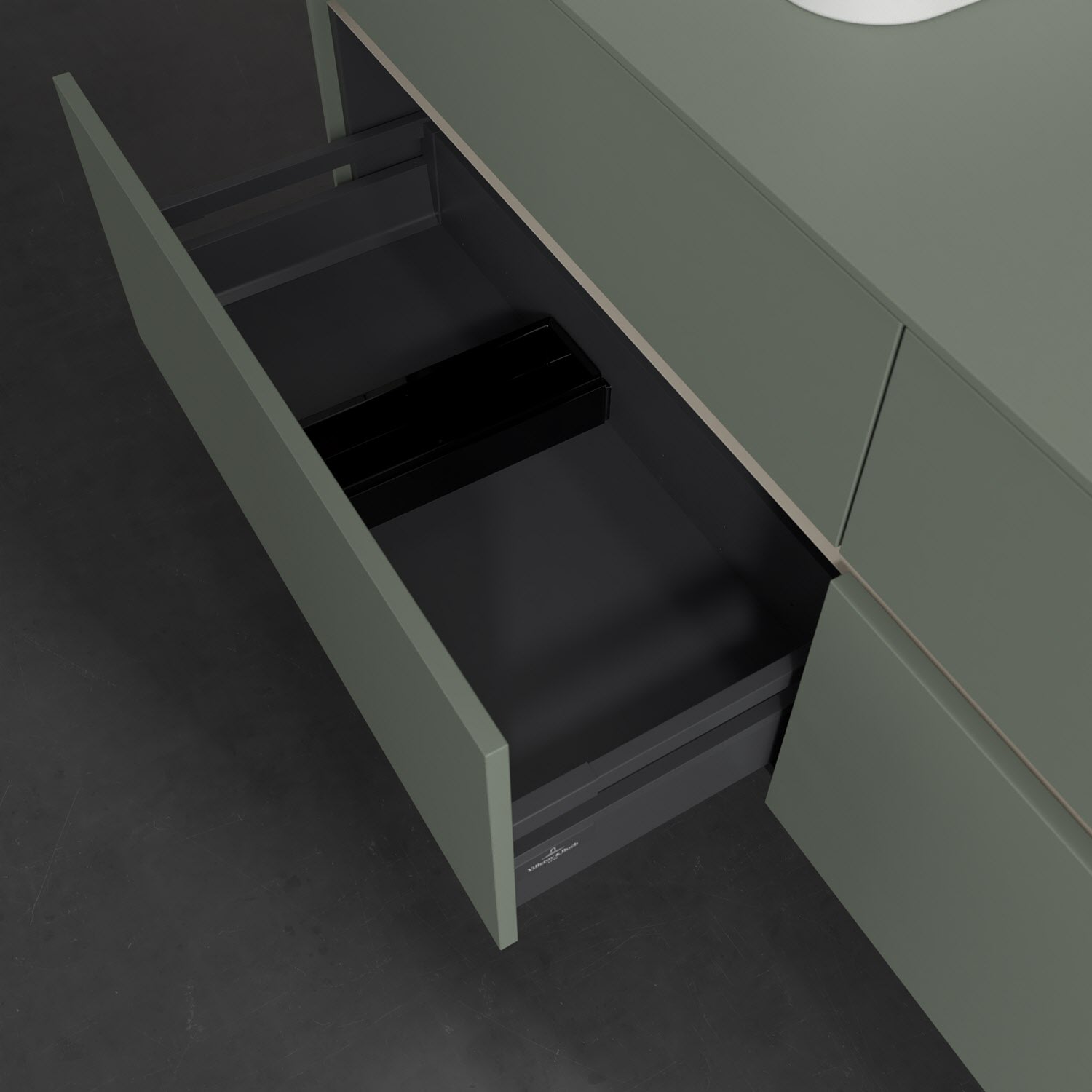Stauraumwunder im zeitgemäßen Design: Der Villeroy & Boch Waschbeckenunterschrank aus der Collaro Kollektion eignet sich besonders für Familienbäder und bietet genau den Platz, der dort benötigt wird. Stimmungsvolles Highlight der schlichten, modernen Front ist die integrierte Griffmulde mit stufenlos einstellbarer LED-Beleuchtung. Im Inneren bietet das Möbelstück mit vier Auszügen erstaunlich viel Komfort – ermöglicht durch großzügiges Platzangebot und den integrierten Antirutschboden. Variabel setzbare Glasabtrennungen und mitgelieferte Accessory Boxen sorgen für den nötigen Überblick. Dank SoftClosing und Selbsteinzug lassen sich die Auszüge nach der Nutzung lautlos schließen. Die Front ist mit einer hochwertigen Lackierung versehen, deren Anti-Fingerprint-Oberfläche unschönen Fingerabdrücken vorbeugt.