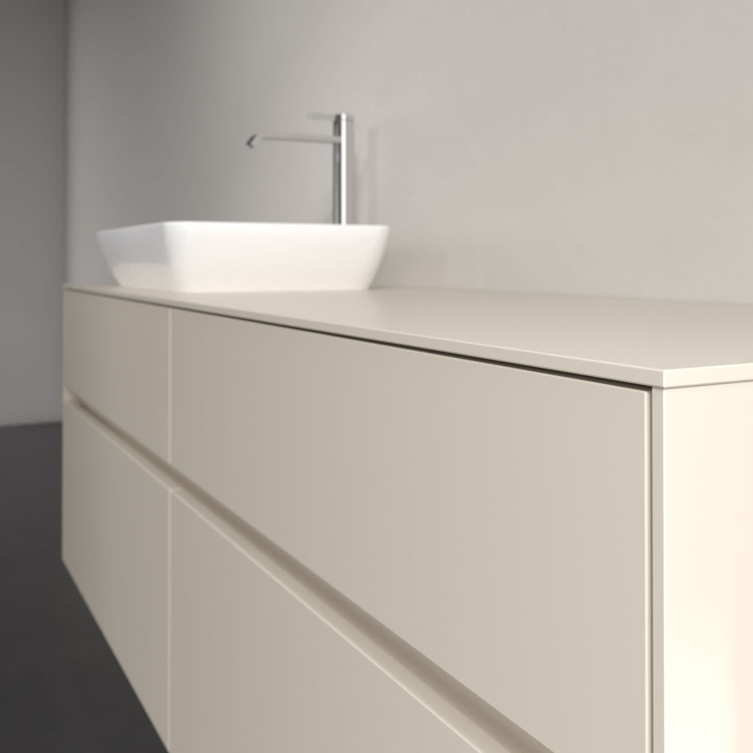 Stauraumwunder im zeitgemäßen Design: Der Villeroy & Boch Waschbeckenunterschrank aus der Collaro Kollektion eignet sich besonders für Familienbäder und bietet genau den Platz, der dort benötigt wird. Stimmungsvolles Highlight der schlichten, modernen Front ist die integrierte Griffmulde mit stufenlos einstellbarer LED-Beleuchtung. Im Inneren bietet das Möbelstück mit vier Auszügen erstaunlich viel Komfort – ermöglicht durch großzügiges Platzangebot und den integrierten Antirutschboden. Variabel setzbare Glasabtrennungen und mitgelieferte Accessory Boxen sorgen für den nötigen Überblick. Dank SoftClosing und Selbsteinzug lassen sich die Auszüge nach der Nutzung lautlos schließen. Die Front ist mit einer hochwertigen Lackierung versehen, deren Anti-Fingerprint-Oberfläche unschönen Fingerabdrücken vorbeugt.