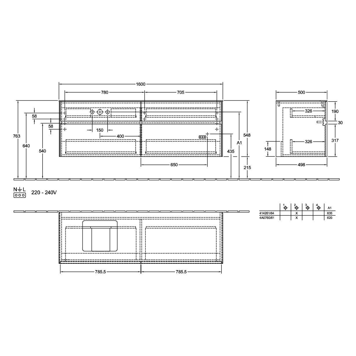 Villeroy & Boch Collaro Waschtischunterschrank 160 x 54,8 cm , mit LED-Beleuchtung, mit 4 Auszügen