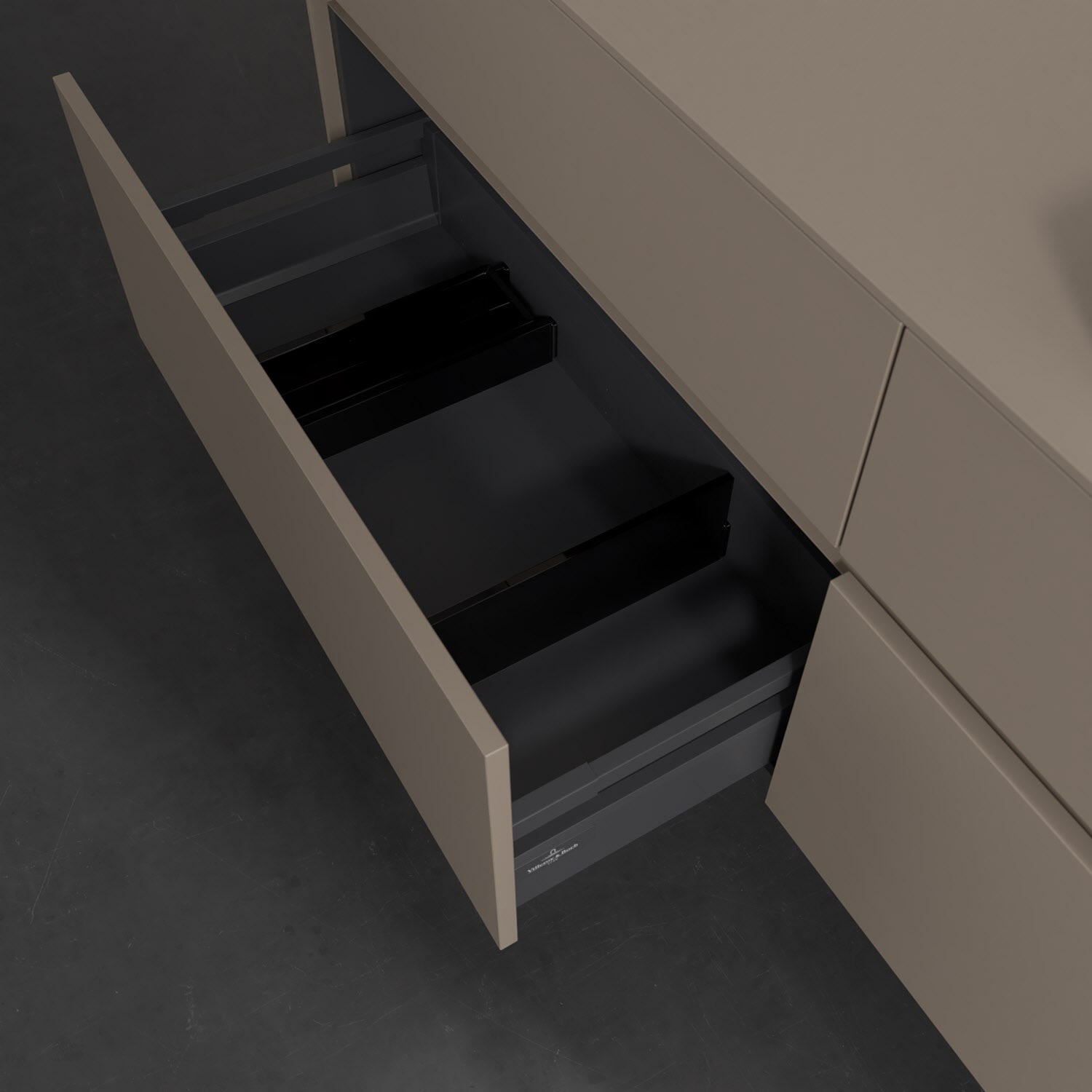 Stauraumwunder im zeitgemäßen Design: Der Villeroy & Boch Waschbeckenunterschrank aus der Collaro Kollektion eignet sich besonders für Familienbäder und bietet genau den Platz, der dort benötigt wird. Eine integrierte Griffleiste sorgt für eine schlichte, moderne Front. Im Inneren bietet das Möbelstück mit vier Auszügen erstaunlich viel Komfort – ermöglicht durch großzügiges Platzangebot und den integrierten Antirutschboden. Variabel setzbare Glasabtrennungen und mitgelieferte Accessory Boxen sorgen für den nötigen Überblick. Dank SoftClosing und Selbsteinzug lassen sich die Auszüge nach der Nutzung lautlos schließen. Die Front ist mit einer hochwertigen Lackierung versehen, deren Anti-Fingerprint-Oberfläche unschönen Fingerabdrücken vorbeugt.