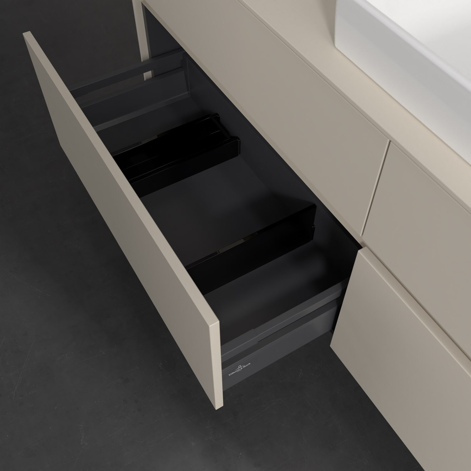 - kein Umfallen oder Verrutschen von Pflegeprodukten in den Schubladen dank rutschhemmendem Boden