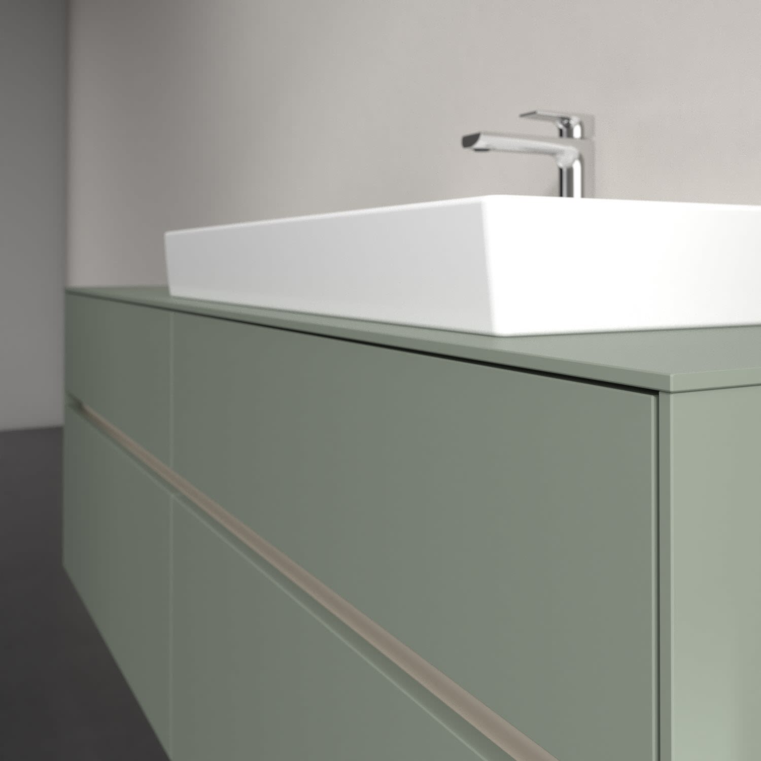 Stauraumwunder im zeitgemäßen Design: Der Villeroy & Boch Waschbeckenunterschrank aus der Collaro Kollektion eignet sich besonders für Familienbäder und bietet genau den Platz, der dort benötigt wird. Stimmungsvolles Highlight der schlichten, modernen Front ist die integrierte Griffmulde mit stufenlos einstellbarer LED-Beleuchtung. Steuern lässt sie sich über einen Touch-Sensor seitlich am Unterschrank. Im Inneren bietet das Möbelstück mit vier Auszügen erstaunlich viel Komfort – ermöglicht durch großzügiges Platzangebot und den integrierten Antirutschboden. Variabel setzbare Glasabtrennungen und mitgelieferte Accessory Boxen sorgen für den nötigen Überblick. Dank SoftClosing und Selbsteinzug lassen sich die Auszüge nach der Nutzung lautlos schließen. Die Front ist mit einer hochwertigen Lackierung versehen, deren Anti-Fingerprint-Oberfläche unschönen Fingerabdrücken vorbeugt.