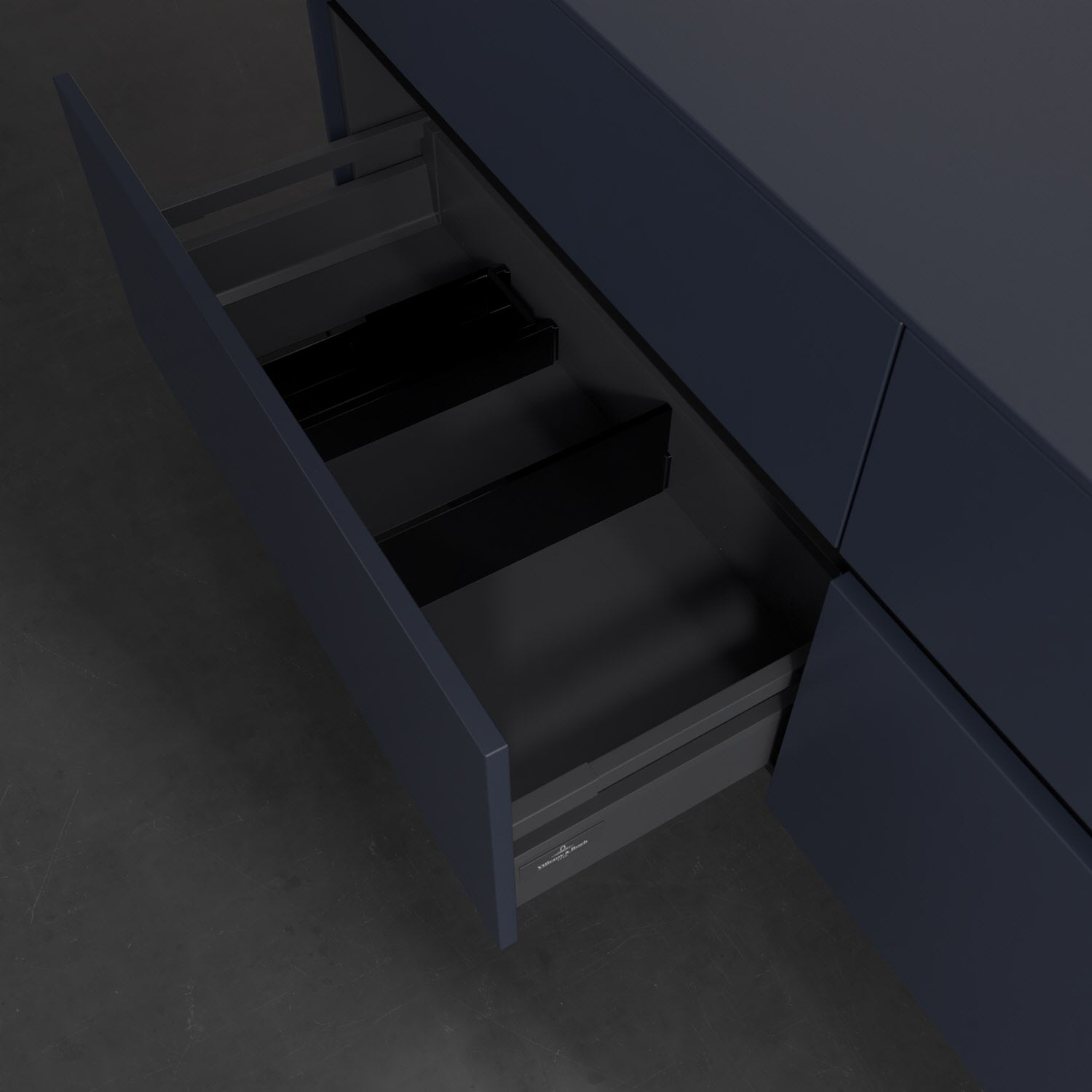 Stauraumwunder im zeitgemäßen Design: Der Villeroy & Boch Waschbeckenunterschrank aus der Collaro Kollektion eignet sich besonders für Familienbäder und bietet genau den Platz, der dort benötigt wird. Stimmungsvolles Highlight der schlichten, modernen Front ist die integrierte Griffmulde mit stufenlos einstellbarer LED-Beleuchtung. Im Inneren bietet das Möbelstück mit vier Auszügen erstaunlich viel Komfort – ermöglicht durch großzügiges Platzangebot und den integrierten Antirutschboden. Variabel setzbare Glasabtrennungen und mitgelieferte Accessory Boxen sorgen für den nötigen Überblick. Dank SoftClosing und Selbsteinzug lassen sich die Auszüge nach der Nutzung lautlos schließen. Die Front ist mit einer hochwertigen Lackierung versehen, deren Anti-Fingerprint-Oberfläche unschönen Fingerabdrücken vorbeugt.