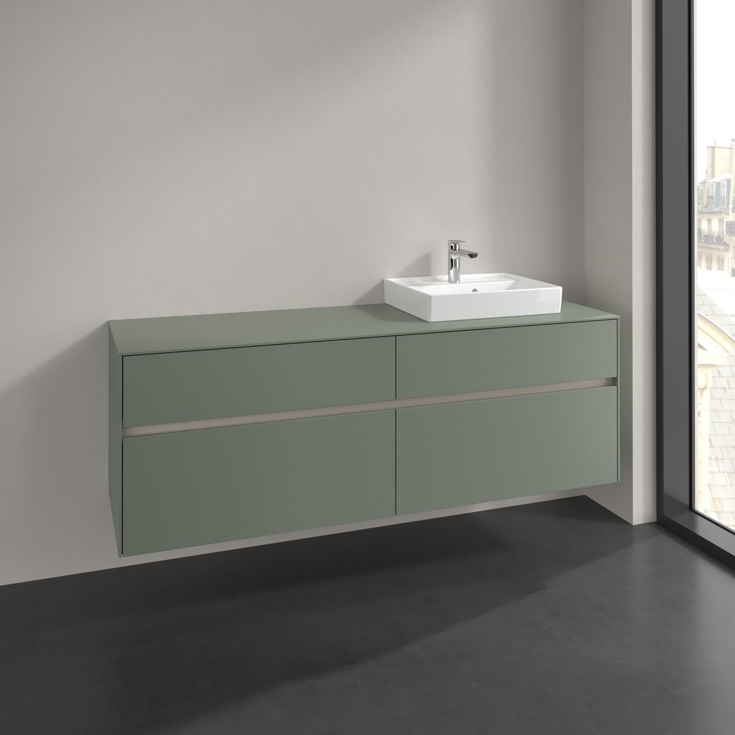 Stauraumwunder im zeitgemäßen Design: Der Villeroy & Boch Waschbeckenunterschrank aus der Collaro Kollektion eignet sich besonders für Familienbäder und bietet genau den Platz, der dort benötigt wird. Stimmungsvolles Highlight der schlichten, modernen Front ist die integrierte Griffmulde mit stufenlos einstellbarer LED-Beleuchtung. Im Inneren bietet das Möbelstück mit vier Auszügen erstaunlich viel Komfort – ermöglicht durch großzügiges Platzangebot und den integrierten Antirutschboden. Variabel setzbare Glasabtrennungen und mitgelieferte Accessory Boxen sorgen für den nötigen Überblick. Dank SoftClosing und Selbsteinzug lassen sich die Auszüge nach der Nutzung lautlos schließen. Die Front ist mit einer hochwertigen Lackierung versehen, deren Anti-Fingerprint-Oberfläche unschönen Fingerabdrücken vorbeugt.