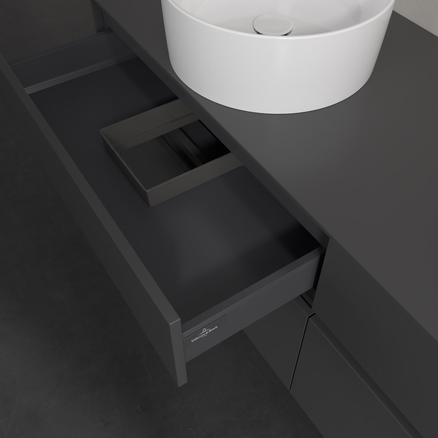 Stauraumwunder im zeitgemäßen Design: Der Villeroy & Boch Waschbeckenunterschrank aus der Collaro Kollektion eignet sich besonders für Familienbäder und bietet genau den Platz, der dort benötigt wird. Stimmungsvolles Highlight der schlichten, modernen Front ist die integrierte Griffmulde mit stufenlos einstellbarer LED-Beleuchtung. Steuern lässt sie sich über einen Touch-Sensor seitlich am Unterschrank. Im Inneren bietet das Möbelstück mit vier Auszügen erstaunlich viel Komfort – ermöglicht durch großzügiges Platzangebot und den integrierten Antirutschboden. Variabel setzbare Glasabtrennungen und mitgelieferte Accessory Boxen sorgen für den nötigen Überblick. Dank SoftClosing und Selbsteinzug lassen sich die Auszüge nach der Nutzung lautlos schließen. Die Front ist mit einer hochwertigen Lackierung versehen, deren Anti-Fingerprint-Oberfläche unschönen Fingerabdrücken vorbeugt.