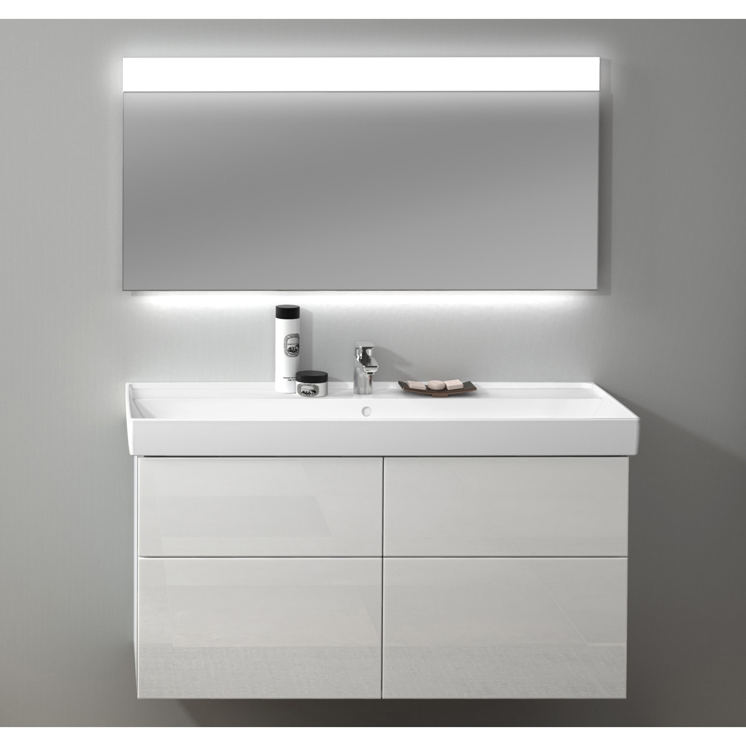 - Rechteckiger Waschtisch mit sehr feinen Wänden