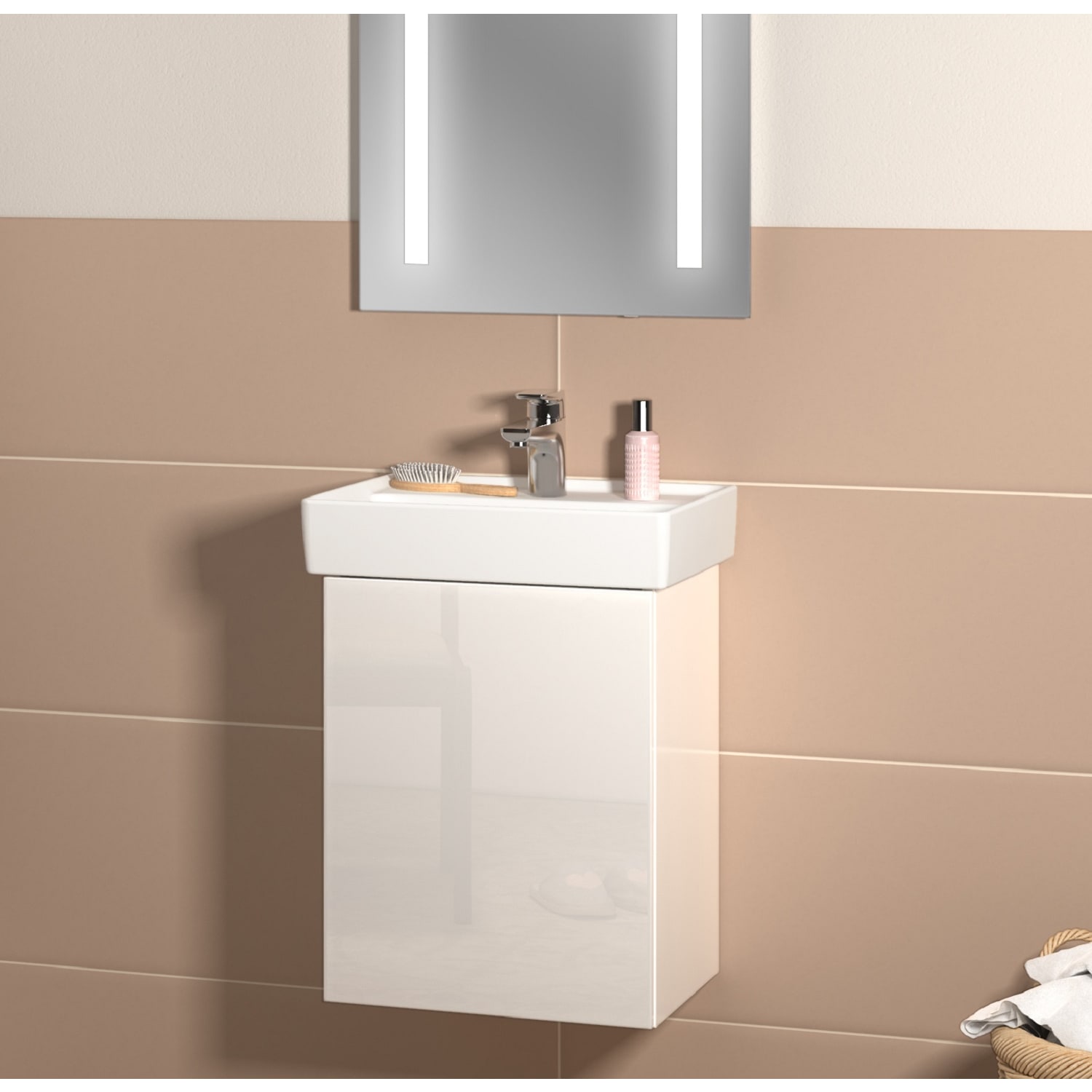 Stilvoll und designstark zeigt sich das rechteckige Collaro Handwaschbecken von Villeroy & Boch. Die feine Optik gelingt dank TitanCeram – ein Werkstoff, der dem Waschtisch seine extrem dünne Wandstärke verlieht und ihn gleichzeitig besonders widerstandsfähig und stabil macht. Doch auch aus funktionaler Sicht hat das Waschbecken einiges zu bieten: Die schmalen Ränder dienen als Spritzschutz und vermeiden unerwünschte Wasserflecken auf dem Boden. Und auf der breiten Hahnlochbank können Seifenspender und andere Utensilien bequem abgestellt werden – die perfekte Lösung für kleine Raumsituationen!