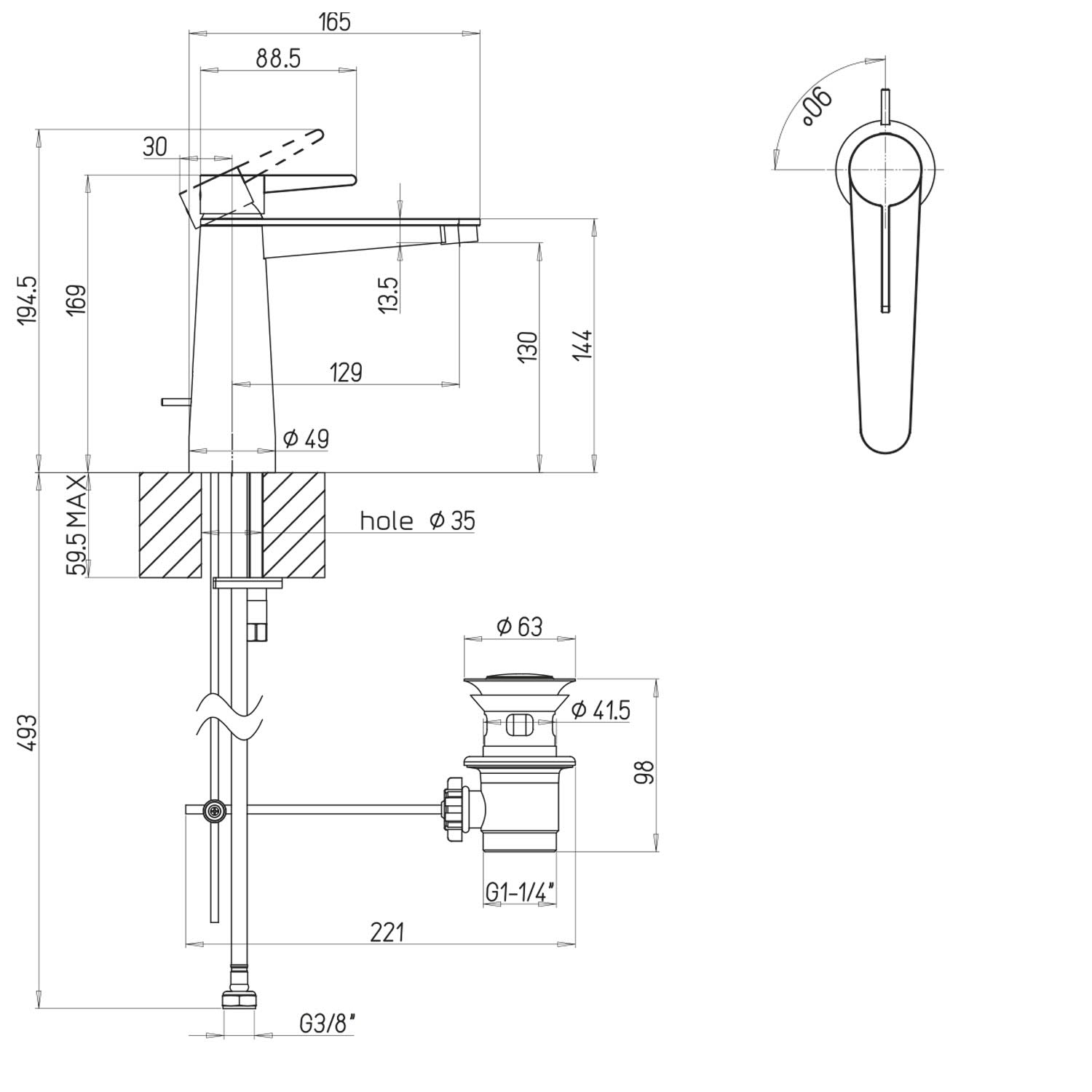 - Zugstangen-Ablaufgarnitur zum einfachen Öffnen und Verschließen des Beckens