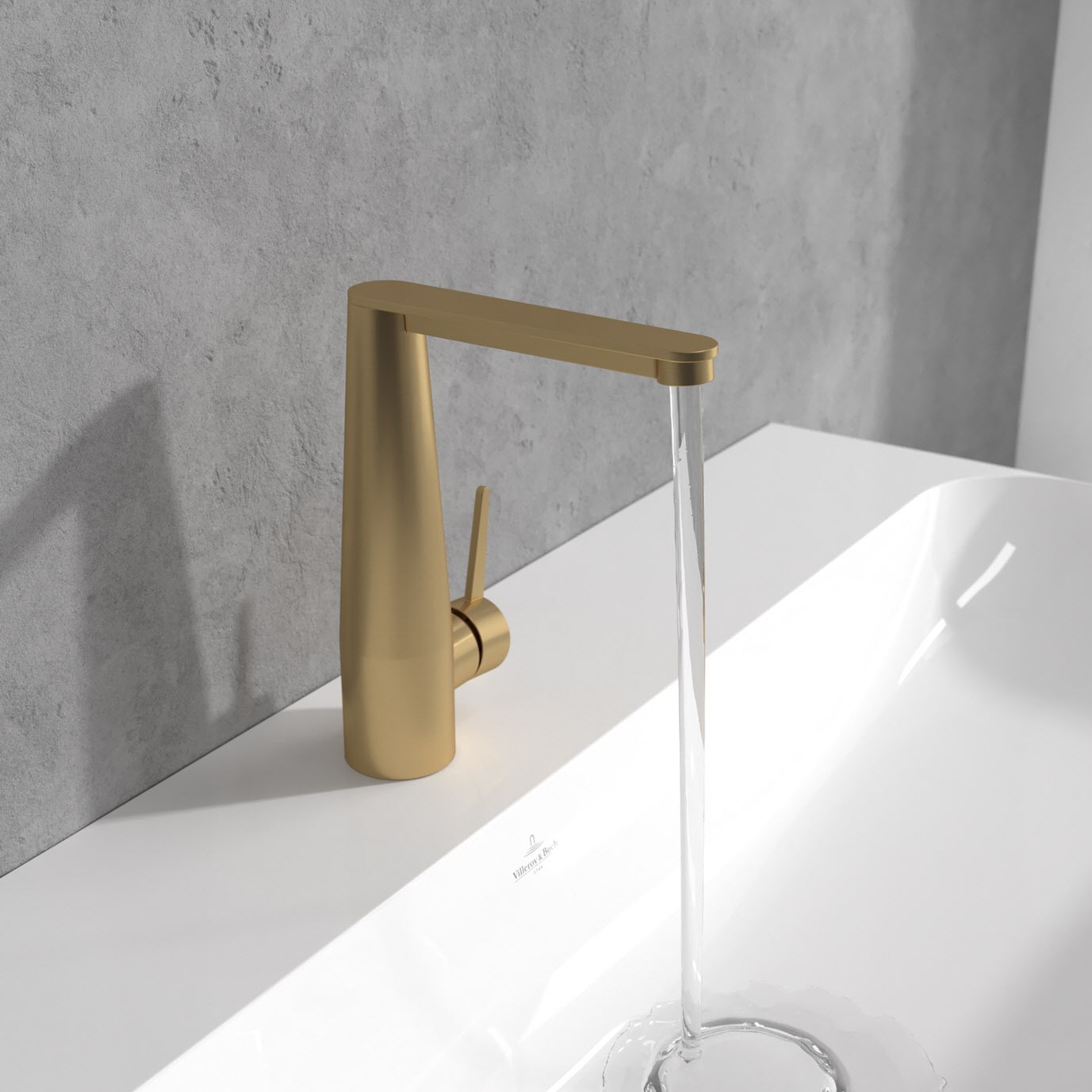 Die erhöhte Conum Einhebel-Waschtischarmatur von Villeroy & Boch: Ihre konische Formensprache besticht durch eine dynamische Eleganz, die jeden Tag aufsNeue fasziniert und dem Waschplatz einen einzigartigen Charakter verleiht. So präzise und kompromisslos wie das Designist auch die Verarbeitungsqualität, die höchste Standards repräsentiert. Der seitlich positionierte Hebel der Armatur aus hochwertigem Messing gleitet beim Öffnen sanft und liegt daher besonders gut in der Hand. Der innovativen Laminarstrahl wird nicht mit Luft vermischt. So ist er kristallklar, besonders leise und vermeidet unangenehme Wasserspritzer beim Händewaschen. Dazu trägt auch die besondere Armaturenhöhe bei – praktisch! Gleichzeitig bietet die Armatur eine umweltfreundliche Wasserbegrenzung auf maximal 5 l/min – ganz ohne Leistungsverlust.